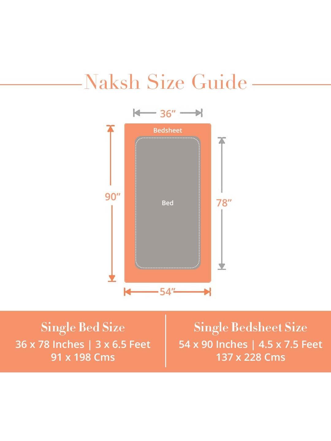 Pack Content: Immerse yourself in the ultimate comfort & aesthetic appeal of our Naksh single bedsheet cotton – the best bedsheet for single bed! Carefully tailored for bed sheet single, our pure cotton single bedsheet measure 54 x 90 inches (137 cm x 228 cm) or 4.5 feet x 7.5 feet. The bedsheet for single bed includes a matching pillow cover measuring 18 inches x 27 inches (46 cm x 69 cm).