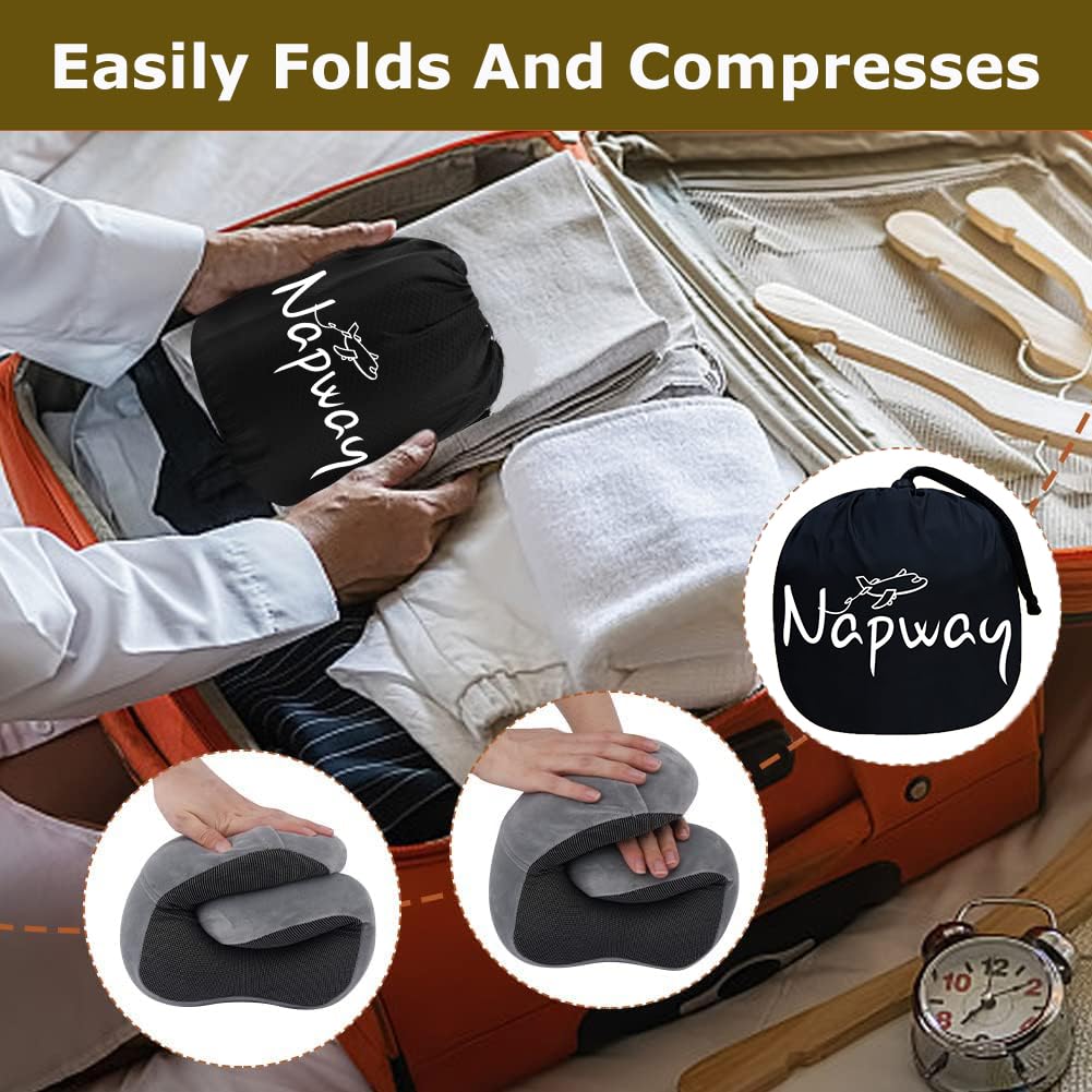 NAPWAY Neck Pillow for Travel, Memory Foam Travel Neck Rest Support Pillow for Sleeping, Travel Pillow for Flights, Train and Car | 360° Neck Rest Support | Washable Cover with Combo