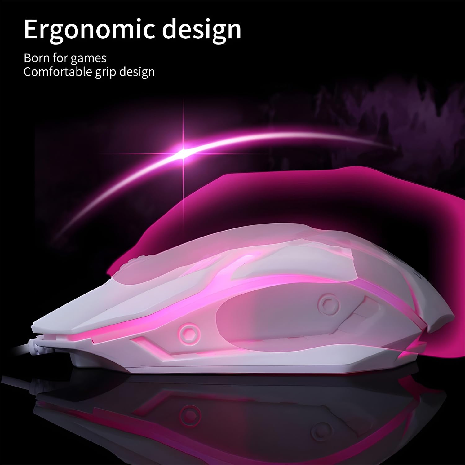 Adding to its stylish appeal, the colorful LED lighting enhances your gaming setup, creating an immersive experience. Whether you’re a casual gamer, an office professional, or someone who values precision and style, this wired gaming mouse is the perfect companion for all your needs.Upgrade your setup with the Natation Wired Gaming Mouse for smooth performance, vibrant aesthetics, and ultimate comfort.