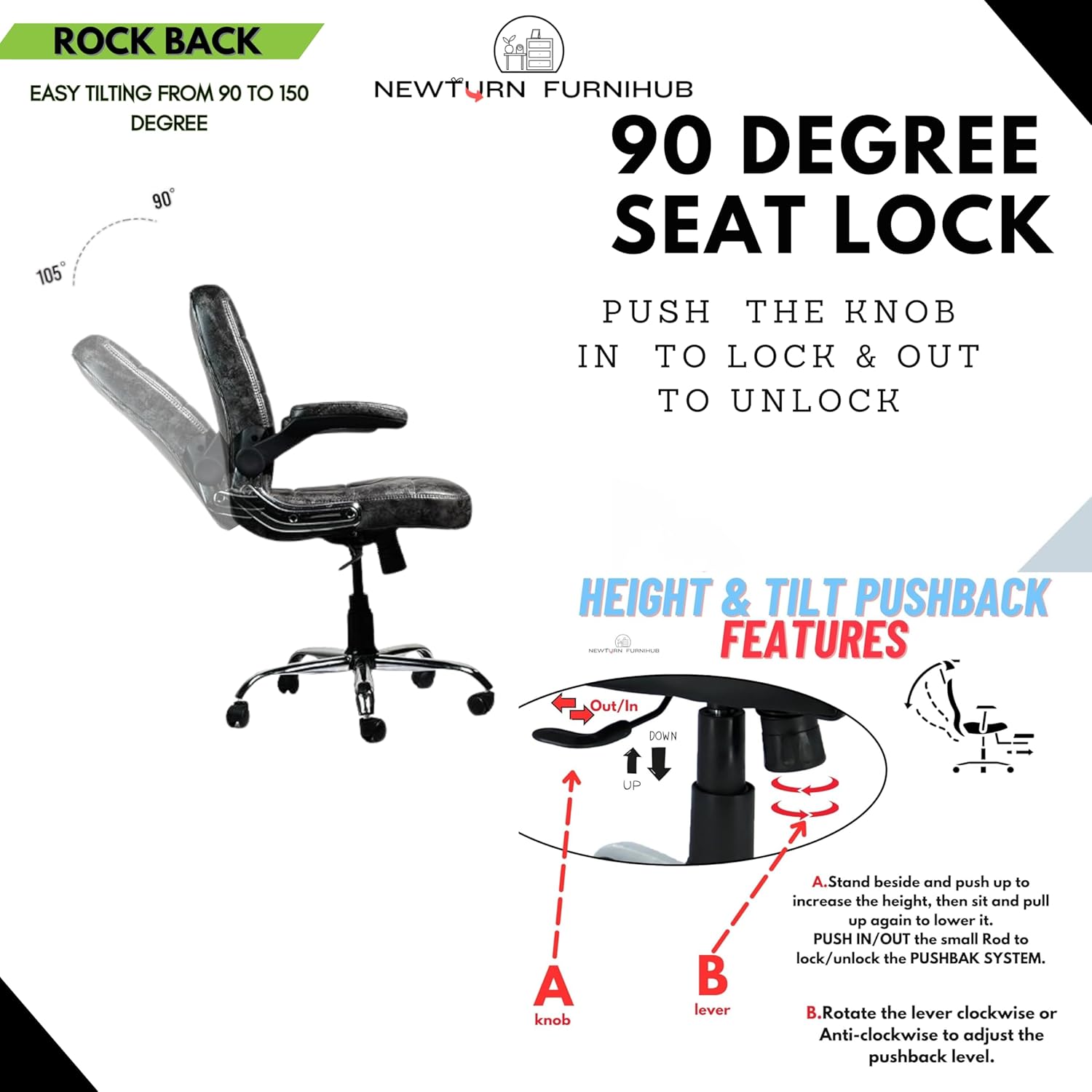 Tilt Mechanism For 135 Degrees recline & 90 degrees Seat Lock using Knob