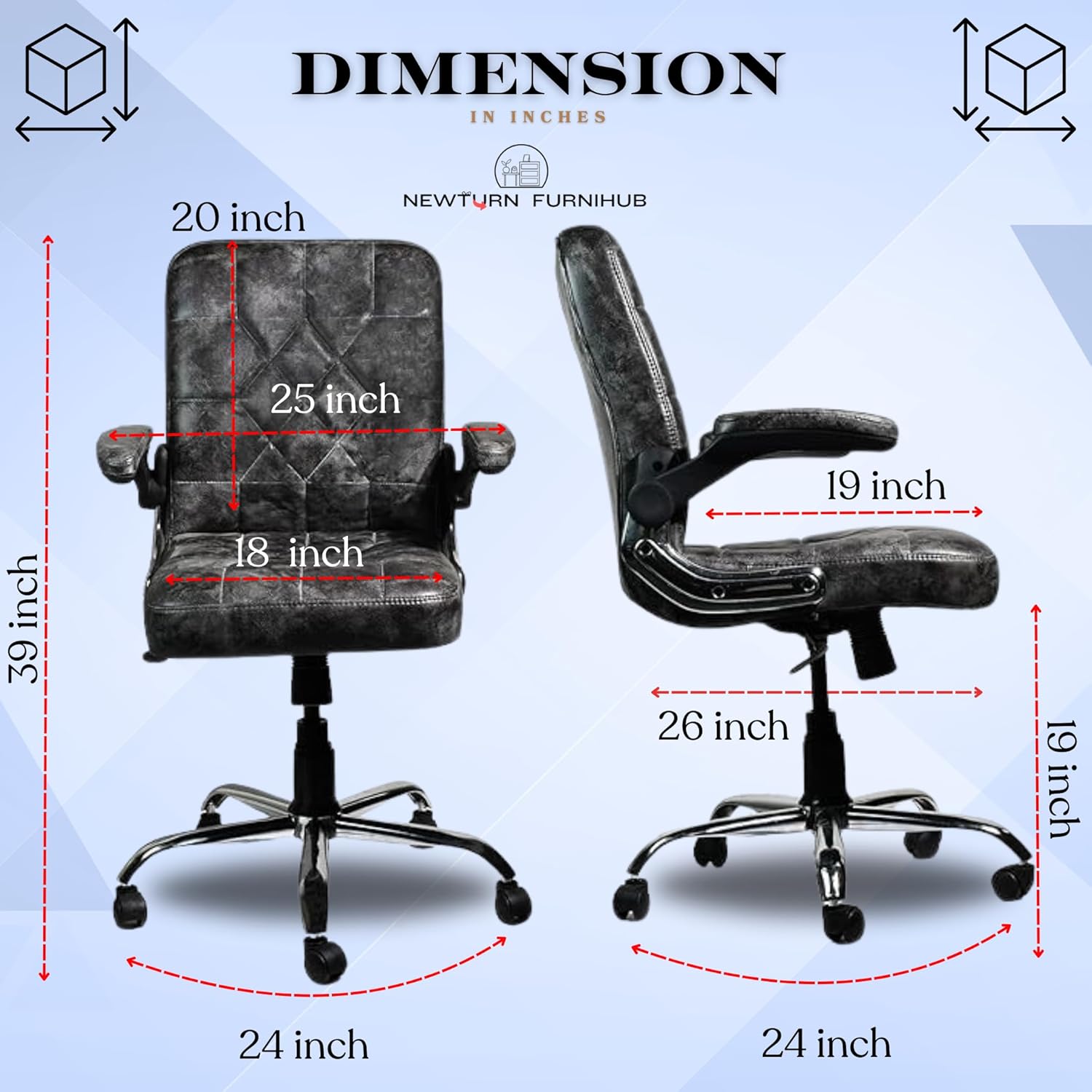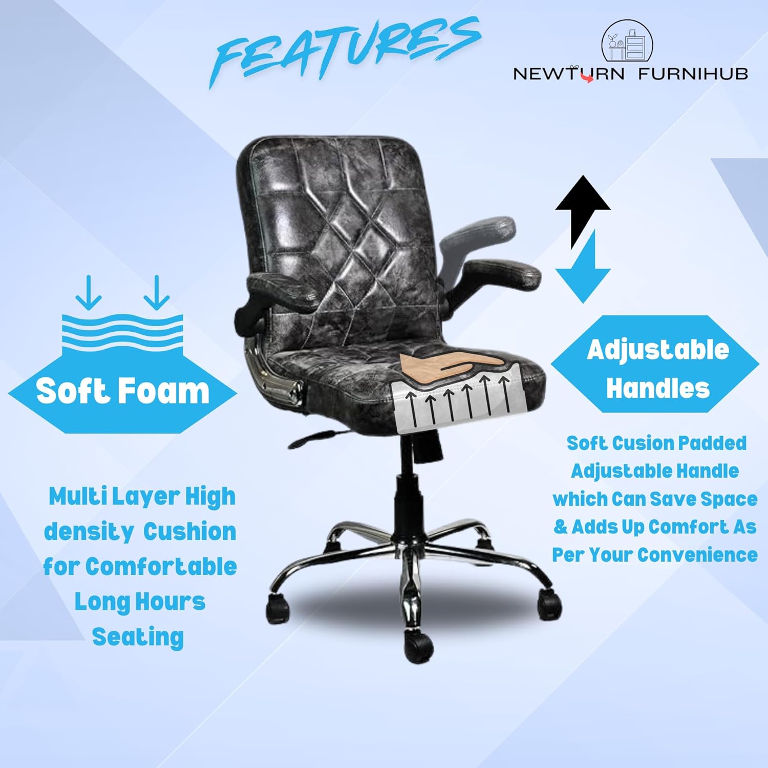 NEWTURN® Maxson Mid Back Adjustable Handle Cushion revolving Chair for Home/Office/Work/Computer/Corporates/WFH/Gaming with 2 Yrs Parts repl. wrty(pre_asmbld) (Pro Mid Back, Black)