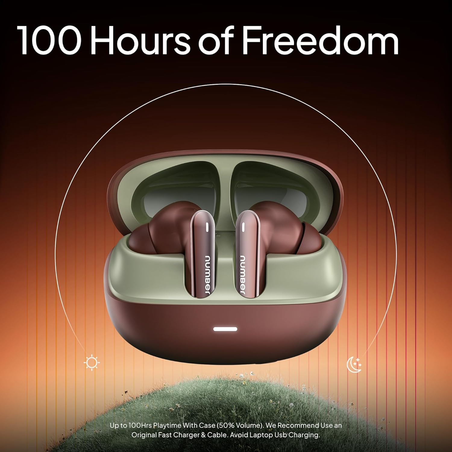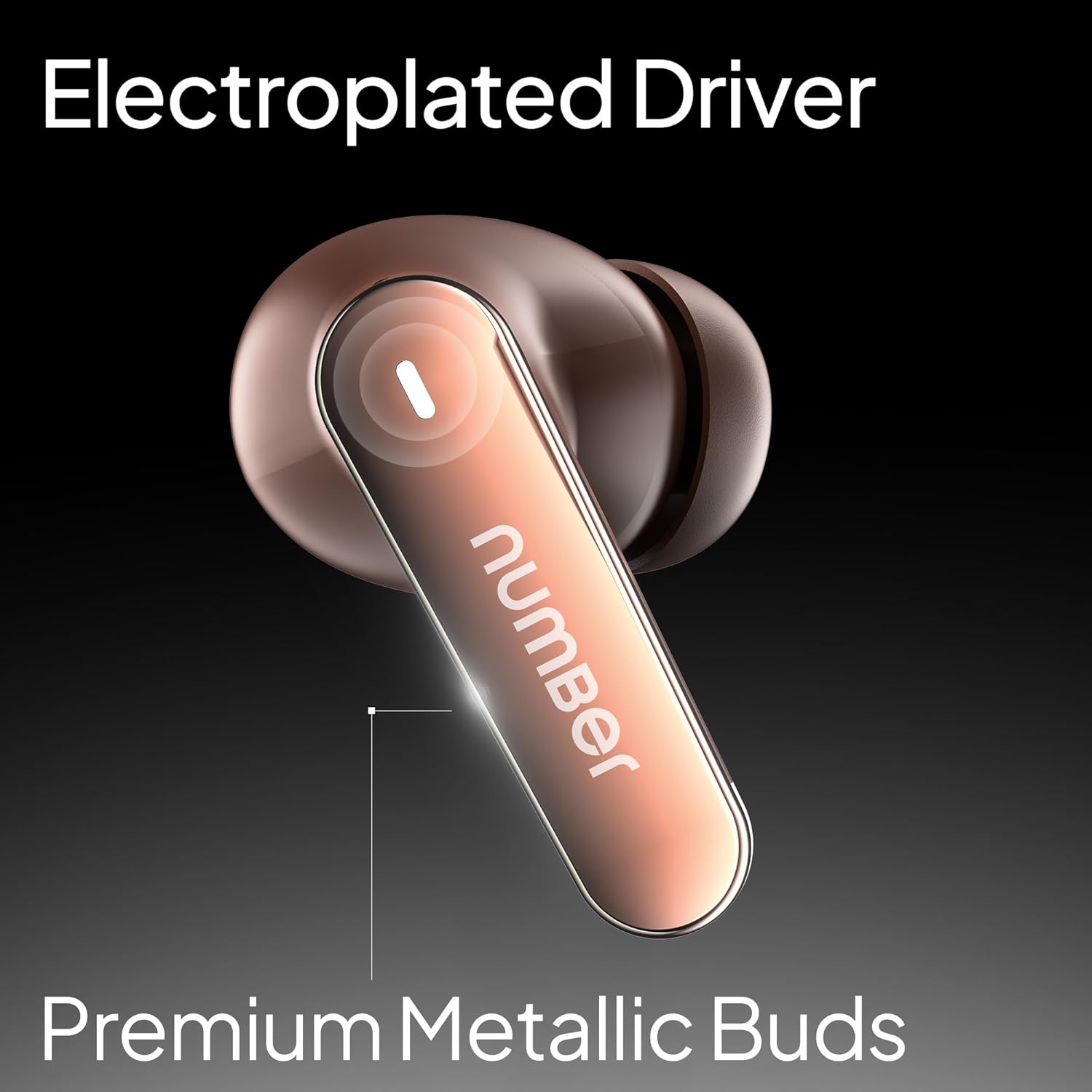 Number Navo Bluetooth Buds N1 w/ 100Hrs Playtime, 4Mic ENC, Dual Pairing, High Bass,True Wireless Earbuds Fast Charge(Choco Brown)