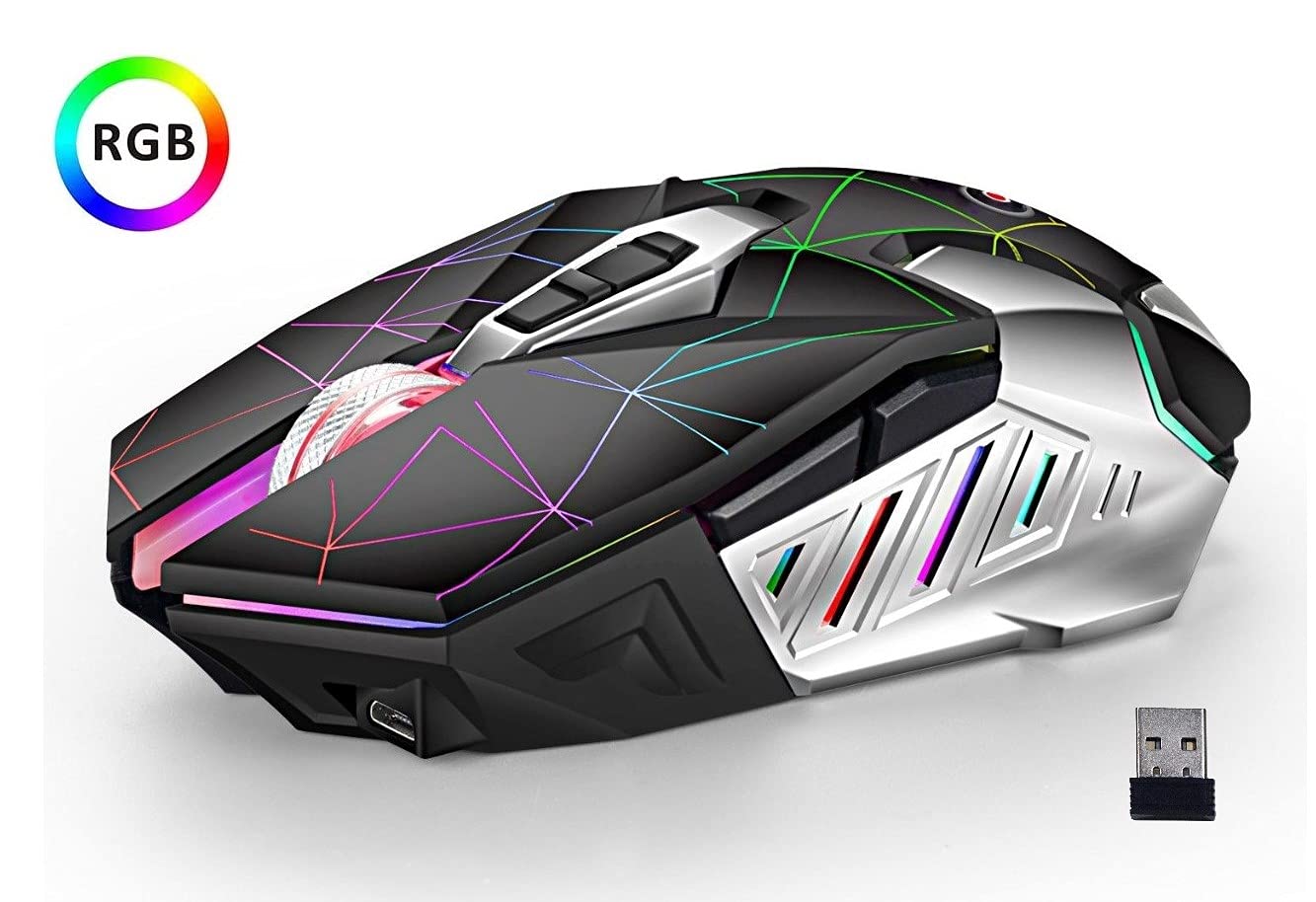 Offbeat®- Ripjaw Alpha Gaming Series 2.4gh Wireless Rechargeable, 8D Silent Clicks, DPI 1600,2400,3200 Mouse for Pc/Laptop/Smart TV/Mac ( Black & Chrome – Without Mouse PAD )