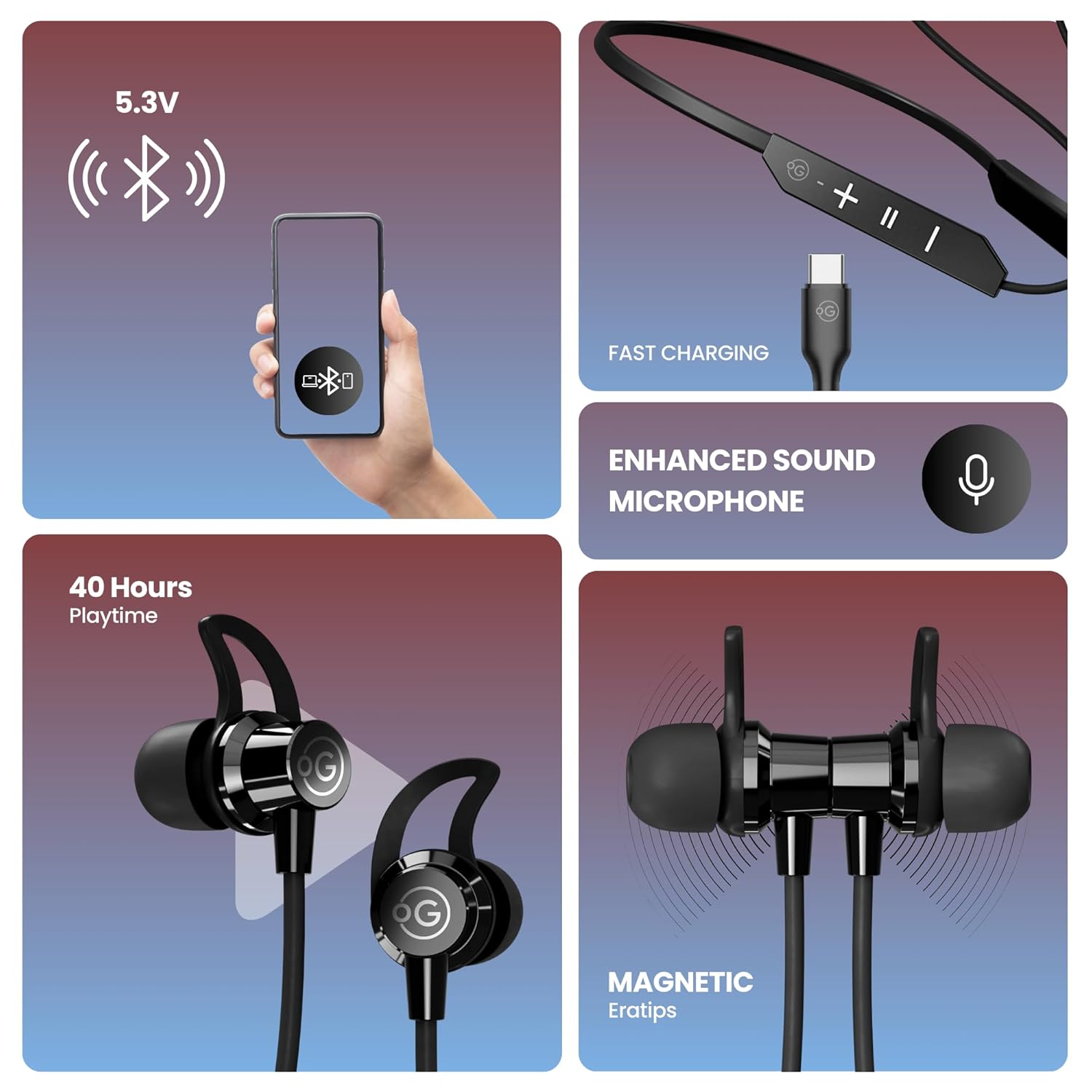 OOGE Tune 22 Neckband Bluetooth Earphones (Black) with 80H Playtime, AI ENC for Calls, Type-C Fast Charging, Bluetooth v5.4, IPX3 Water Resistance, Metallic Buttons, Sleek Design, 3000H Standby