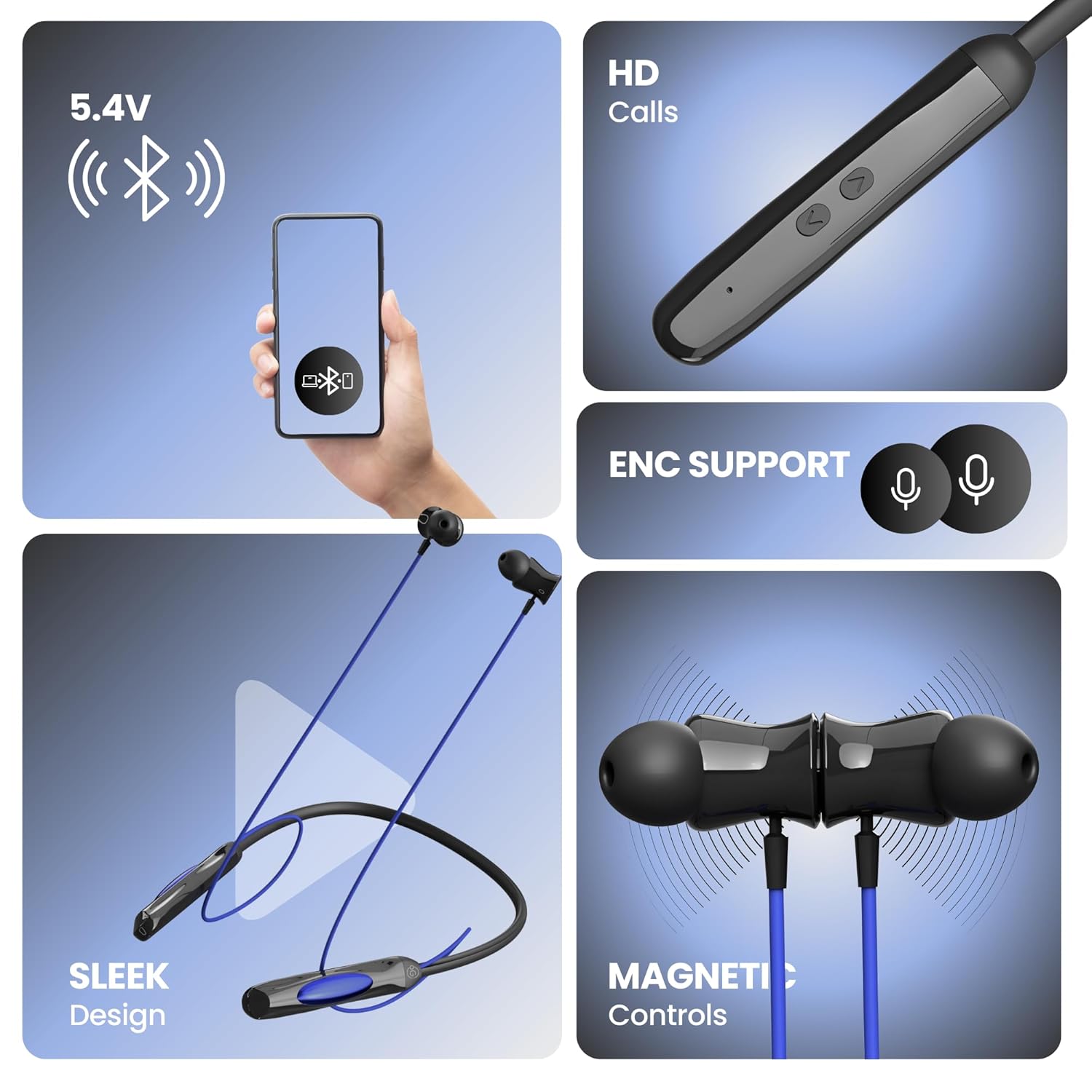 OOGE Tune 25 Wireless Neckband Earphones – Blue | Bluetooth 5.4, 100H Playtime, 13mm Driver, Type-C Fast Charging, ENC Mic, Deep Bass, Sweatproof, Lightweight, Metallic Buttons, Magnetic Earbuds