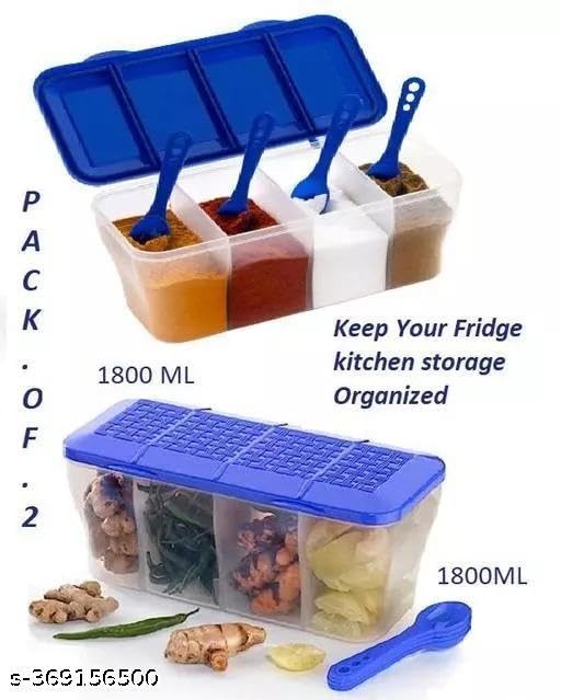 Pack of 2, 4 in 1 Kitchen Storage Container for Fridge, 1800ml Multipurpose Box for Vegetables, dryfruits, Grocery, Pickles.|Design – for Home and Kitchen