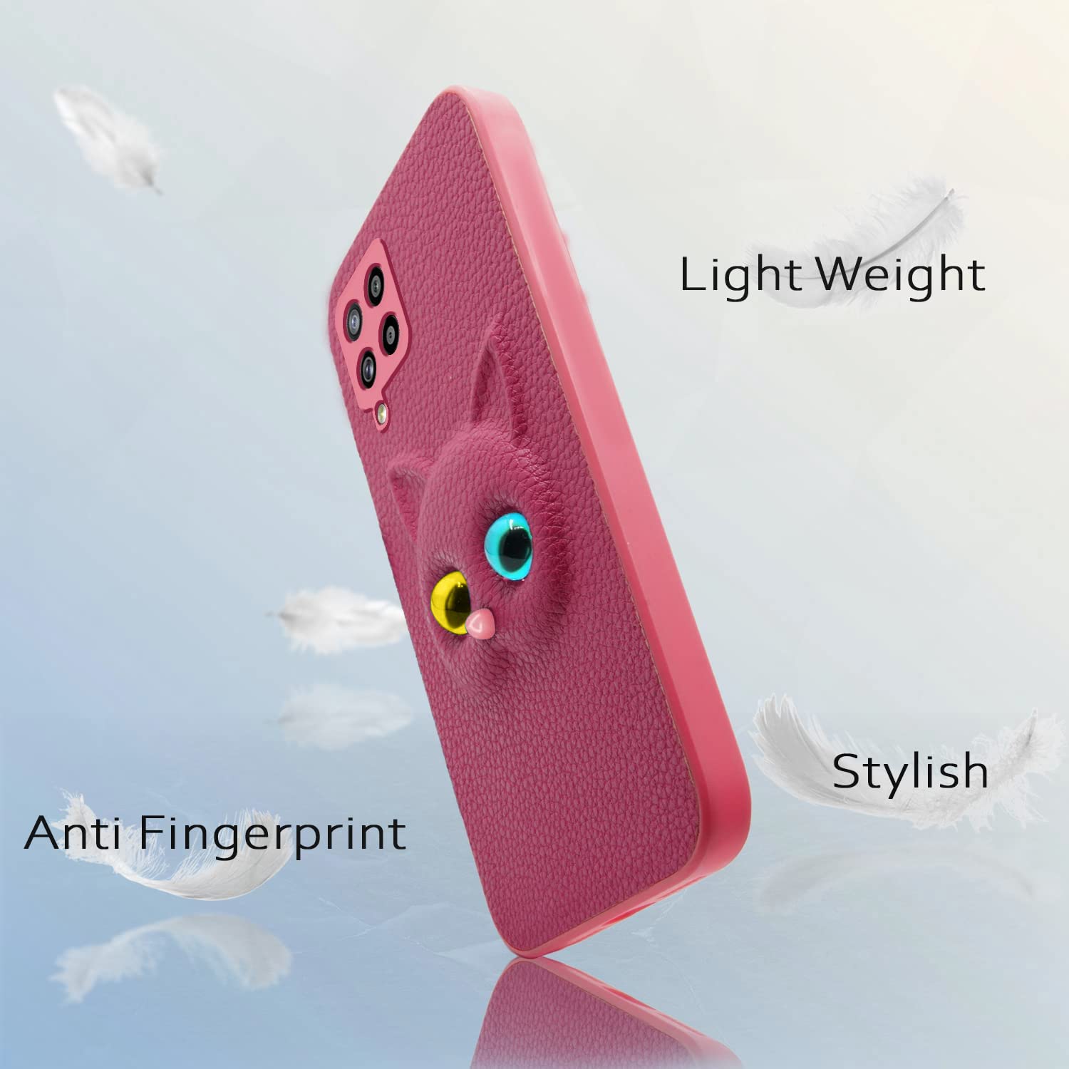 Pikkme Samsung Galaxy M32 Prime / M32 4G Back Cover for Girls | Cute Cat Leather Finish | Soft TPU | Case for Samsung Galaxy M32 Prime / M32 4G (Pink)