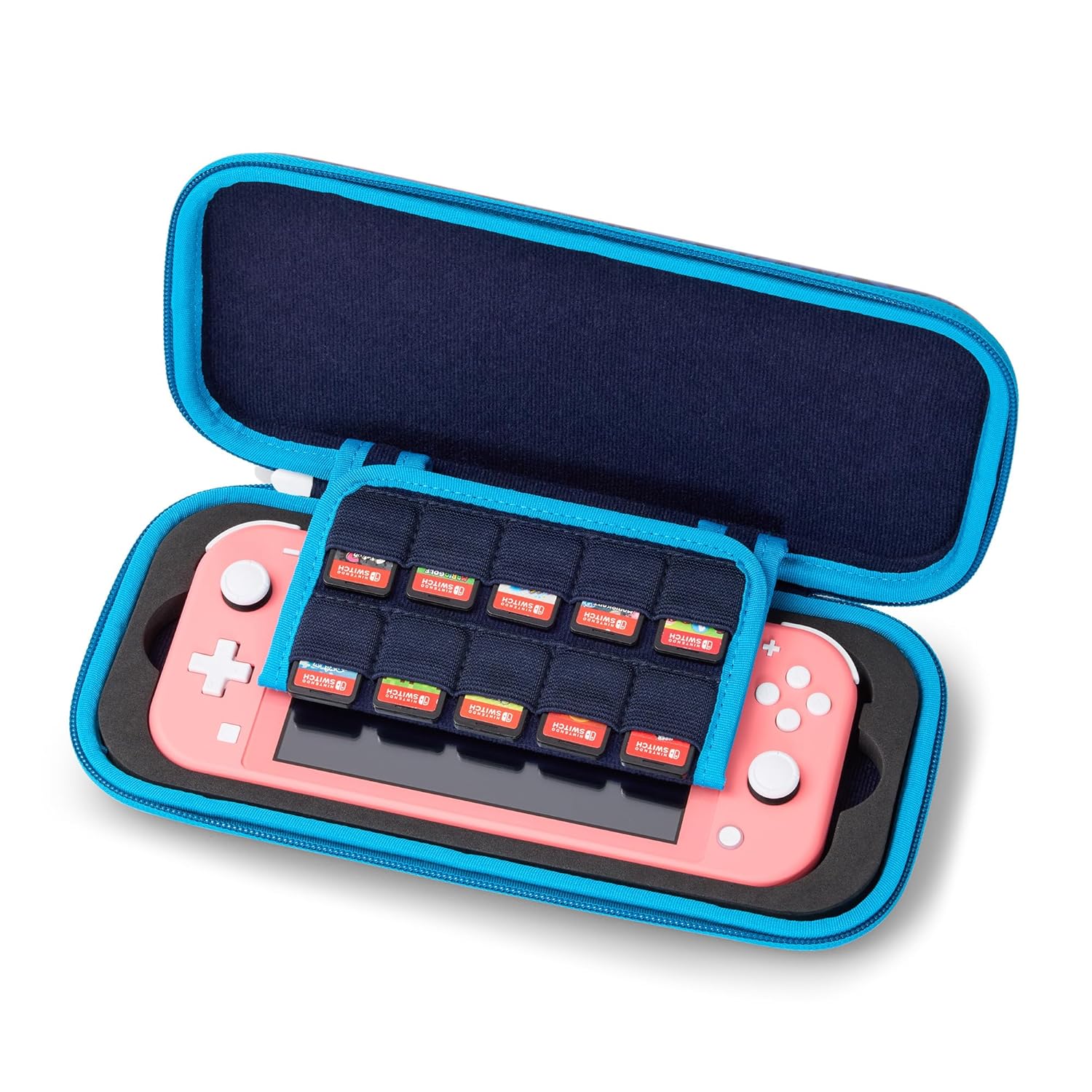 Take your Nintendo Switch – OLED Model, Nintendo Switch or Nintendo Switch Lite to go with this slim protective case. Inside, you’ll find a felt lining and built-in play-stand with storage for ten game cards, plus a small mesh pocket. This portable case gives you the freedom to have fun on the go with your Nintendo Switch. Wherever. Whenever.