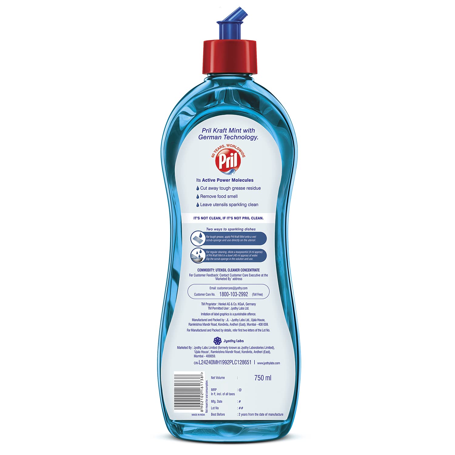 Pril Kraft Mint Liquid Dishwash Gel – 750ml – Malodour Removal Specialist | Insta Clean | Suitable for cleaning Non-Veg Cooked Utensils or Strong Smelling Food was served | Zero White Residue