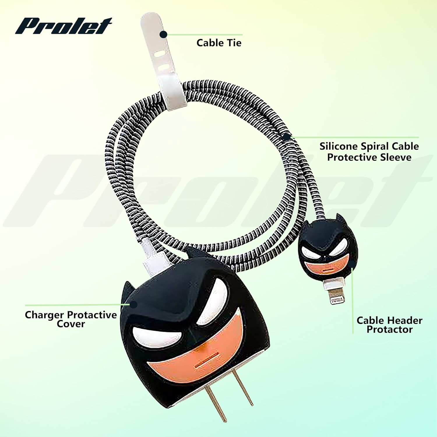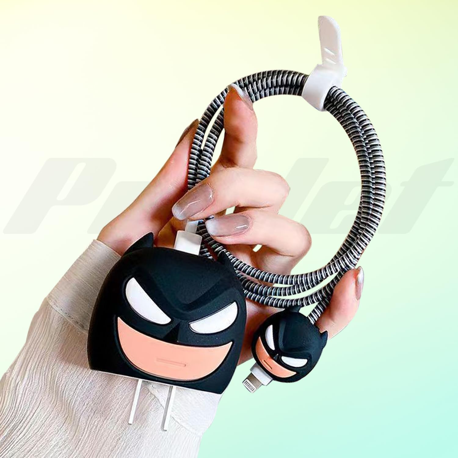 Prolet Cartoon Silicone Charger Case for Only iPhone 18W & 20W Charger and Wire Protector for Lightning Cable – Fun and Protective Cover with 3D Cartoon Design (Charger Not Included) – Bat-Man Black