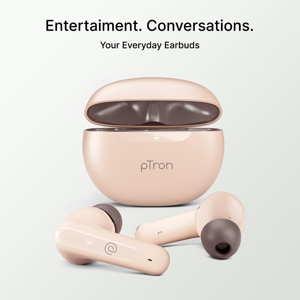 pTron Bassbuds Astra in-Ear TWS Earbuds w/Stereo Sound, 34Hrs Playtime, Stereo Calls, Custom EQ, Mobile App, BTv5.3 Headphones, Touch Control, Voice Assistant, Type C Charging & IPX4 (Brown)