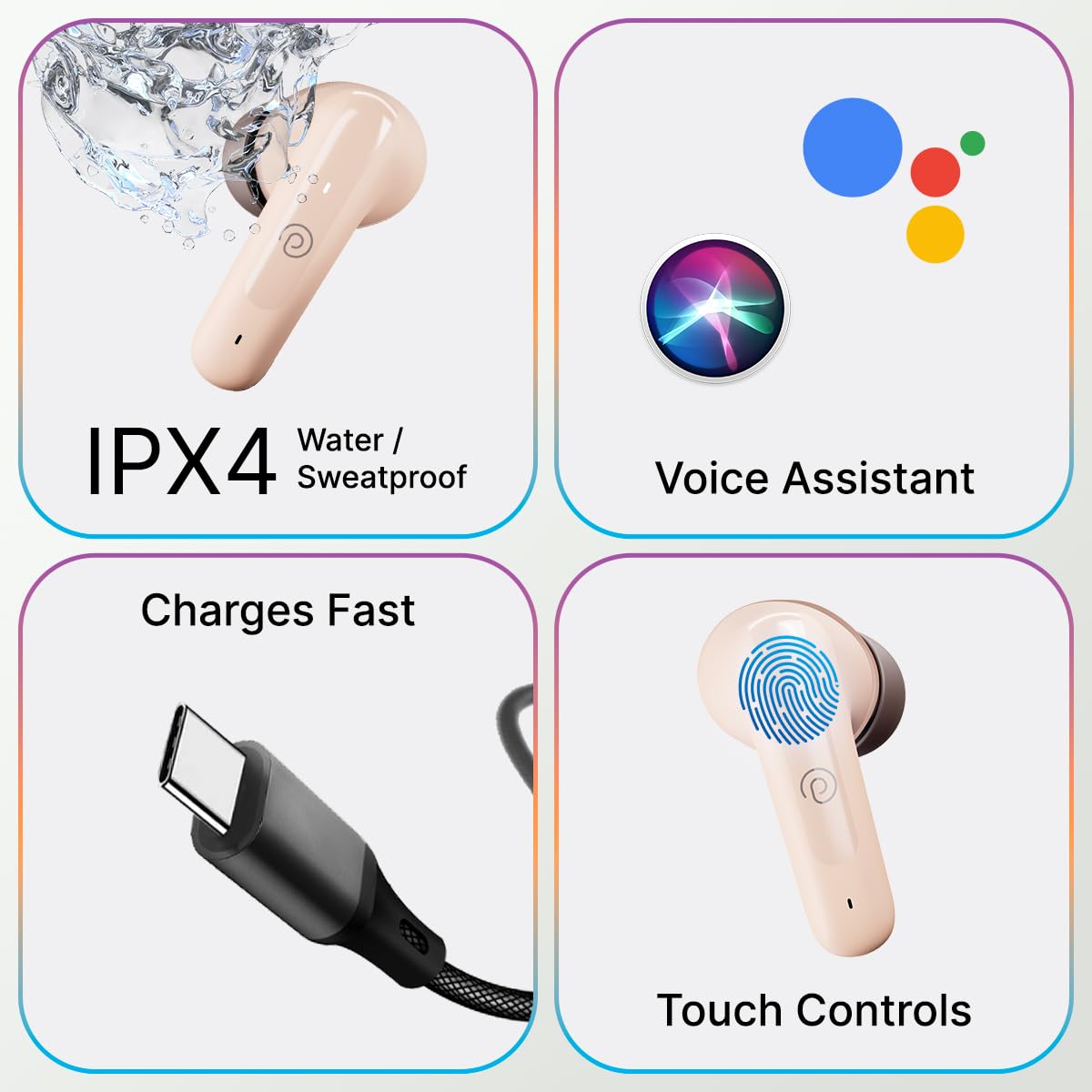 Control Music/Call thru Touch Sensors | IPX4 Water/Sweatproof Earbuds | Instant Access to Device’s Voice Assistant