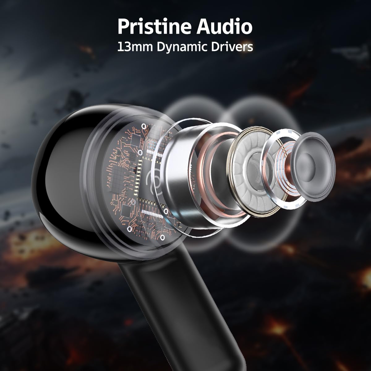 Immerse in Gaming with Bassbuds Turbo’s 40ms Low-latency for a Winning Edge || Enjoy up to 50 Hrs Nonstop Playtime || Dual HD Mics with AI-ENC Deliver Clear, Crisp Calls so You’re Always Heard