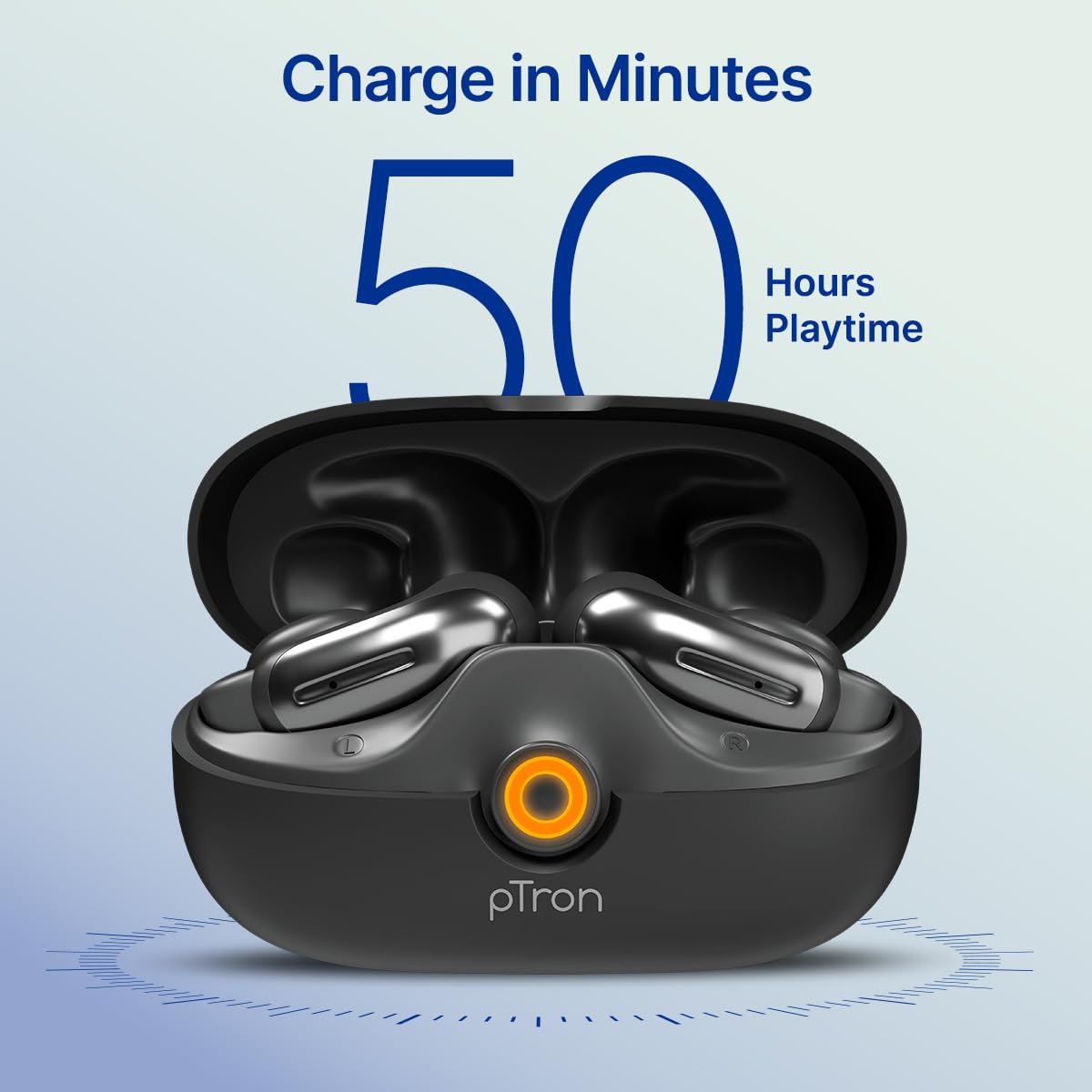 Bassbuds Vortex OWS earbuds are equipped with a Dual HD Mic for a Clear Call Quality Experience || 50 Hours Playback Time with Charging Case || Seamless & Stable 10m Wireless Connectivity