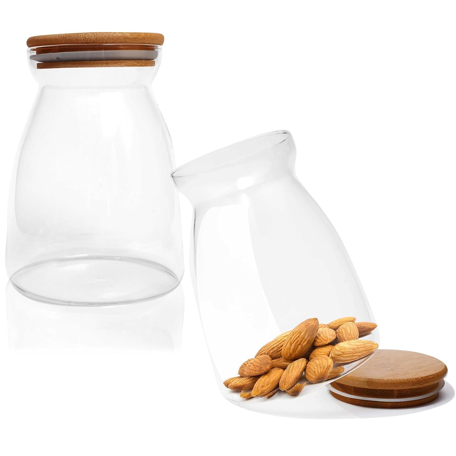 Pure Source India Matka Shape Bamboo Lid Glass Jar Container, 1Ltr / 1000ml – Clear (1 Piece)
