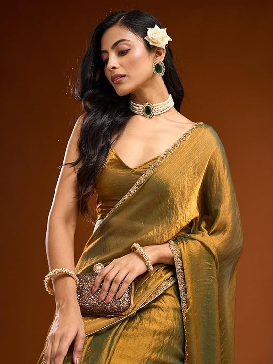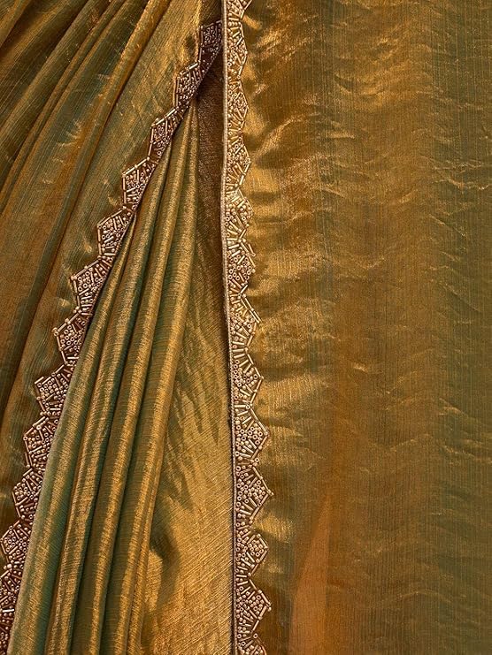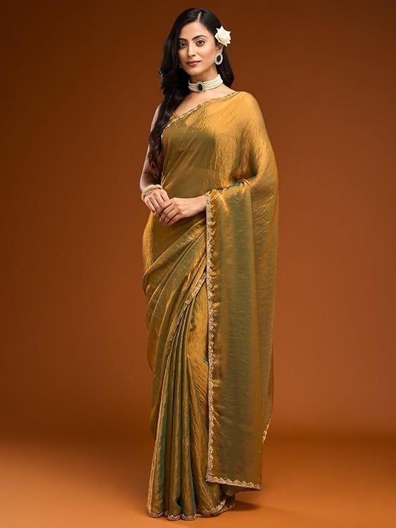 RAJESHWAR FASHION WITH RF Women’s Soft Zimmy Choo Fancy Silk Saree With Hand Work Lace Boarder & Comes With Unstitched Blouse Piece | Latest Sarees Bollywood Sari | New Sarees (AZ-RF-OG-DHAMAKA GOLD)