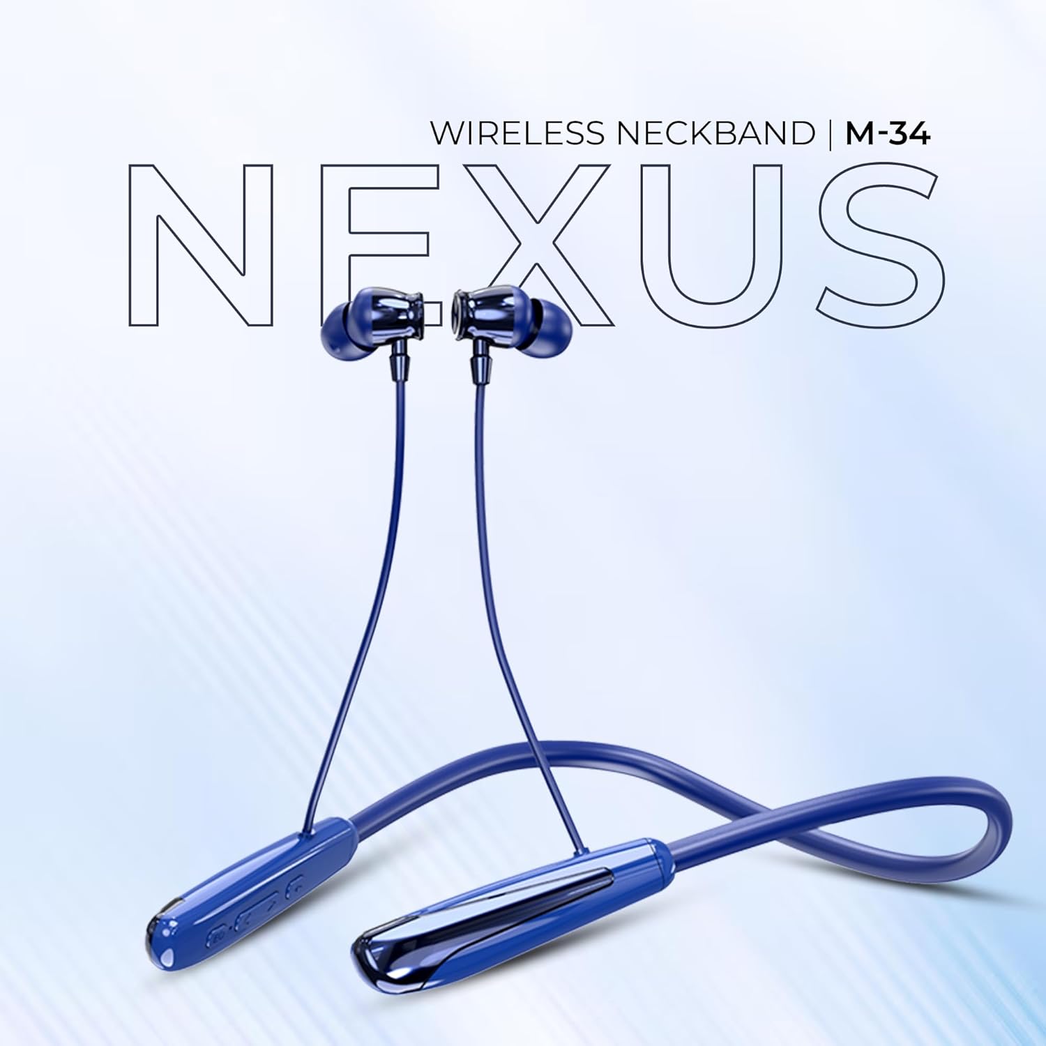 RD M-34 Nexus Wireless Neckband | 15mm Driver Size | Dynamic Driver | Bluetooth 5.3 | Clear Calls | EQ Modes | Dual Pairing | Type-C Fast Charging | Voice Assist | 90 Hrs Battery | IPX5 | Blue