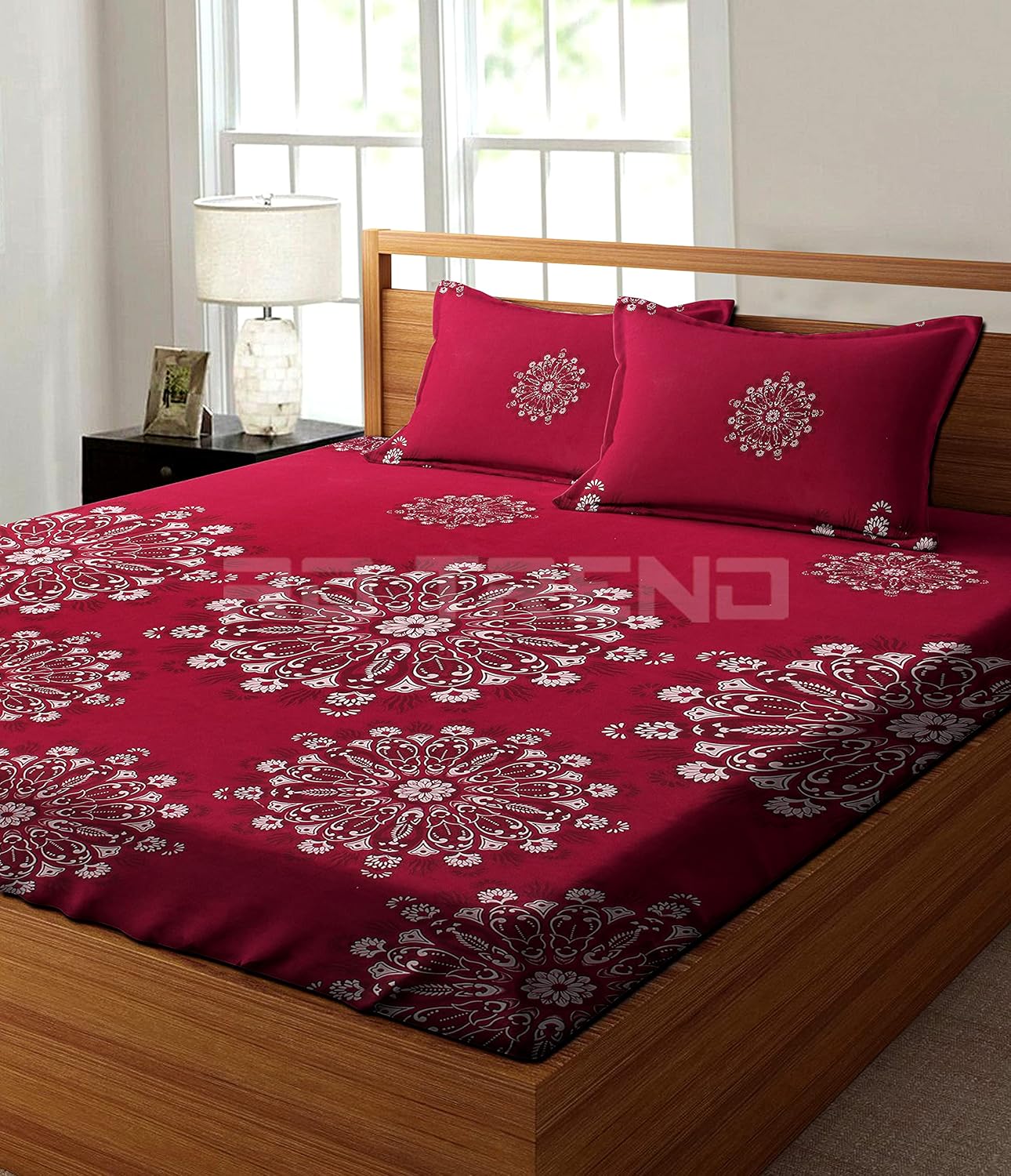 RD TREND Presents Luxurious Glace Cotton Super Soft 210 TC 360° Elastic Fitted Bedsheet King Size (78X72X8 Inch) with 2 Pillow Covers, Color-Wine Pattern-Floral