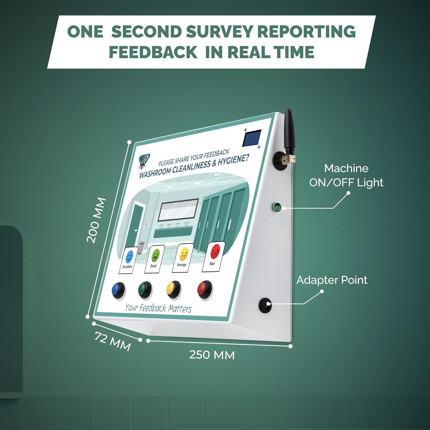 Upgrade your facility’s hygiene and service experience with the Rely Cure ⇒ VP INDUSTRIES (Pro Model) Feedback Machine, designed for real-time customer satisfaction tracking. This advanced smiley feedback system features a bright digital display, inbuilt WiFi hotspot, and seamless mobile app integration to help businesses collect instant, reliable, and actionable feedback. Perfect for toilets, malls, hospitals, restaurants, corporate offices, airports, retail outlets, and public washrooms, this intelligent feedback machine allows users to share their experience with a simple button press. With every response automatically synced to the cloud, your team can access live reports, daily analytics, performance insights, and history logs anytime, anywhere. Built with durable materials and intuitive UI, the Rely Cure Pro Model ensures maximum accuracy, uptime, and ease of use—making it an essential tool for improving customer satisfaction and maintaining service quality standards.