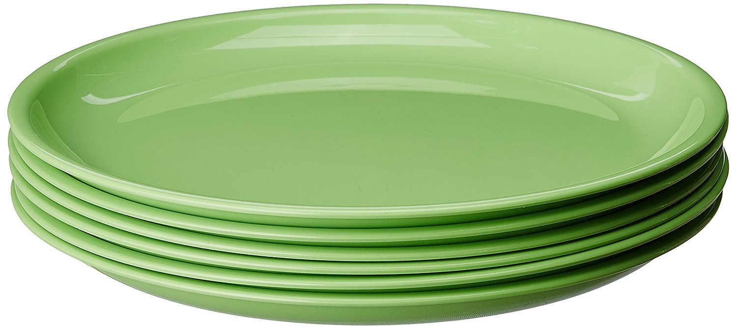 Signoraware Plastic Round Full Plate Set, Parrot Green – Set of 6