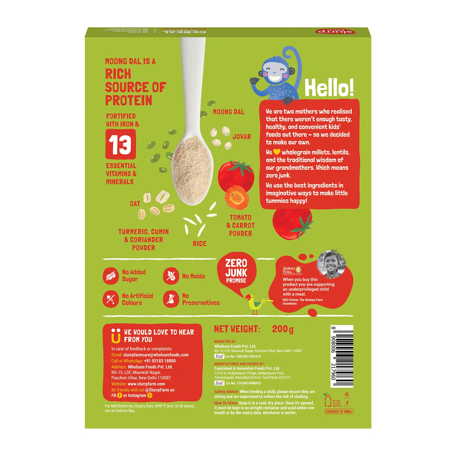 Slurrp Farm No Added Sugar Instant Moong Dal Khichdi for Little Ones | No Salt, No Milk | Healthy Cereals for Kids with Real Vegetables | Great for Travel | Easy to digest, 200g