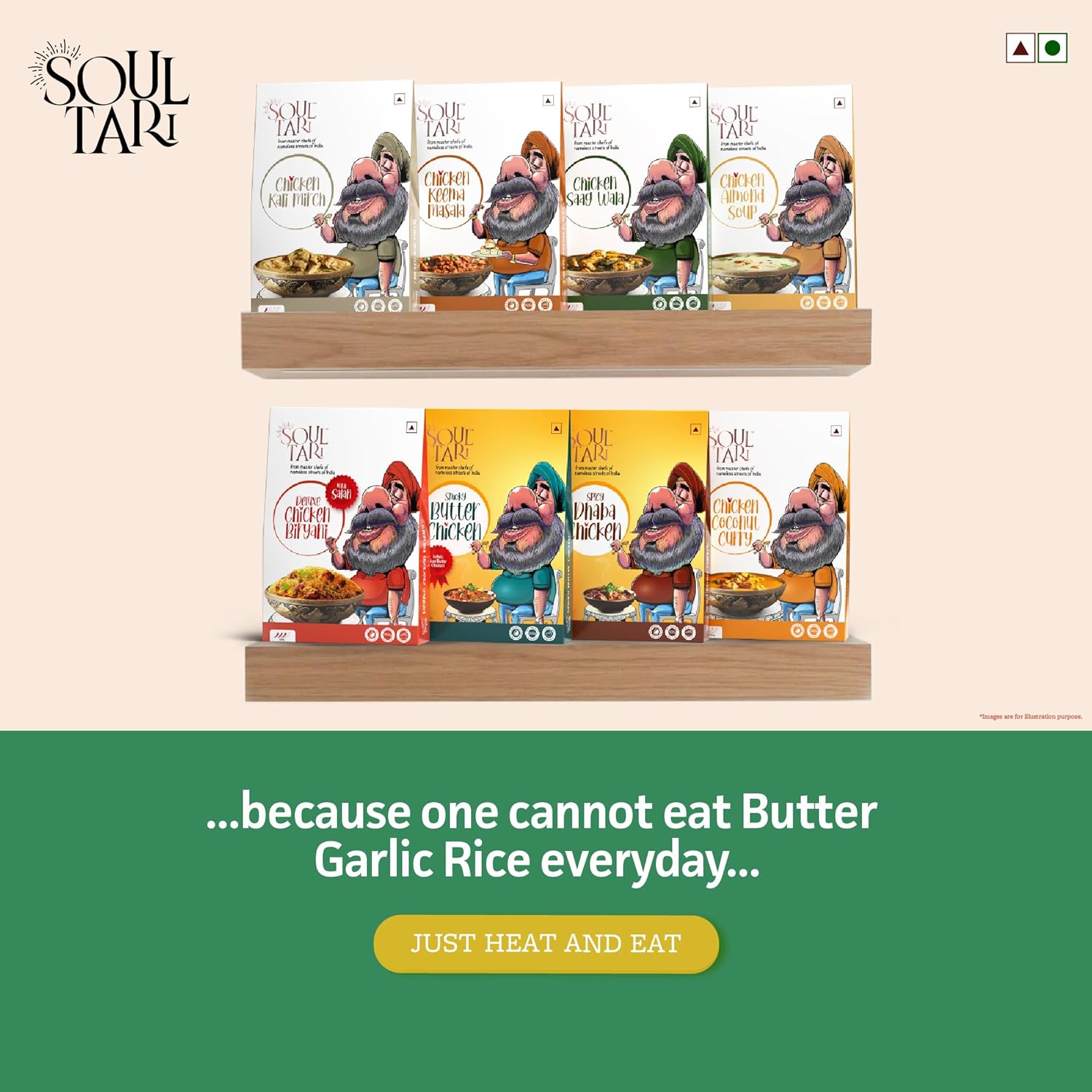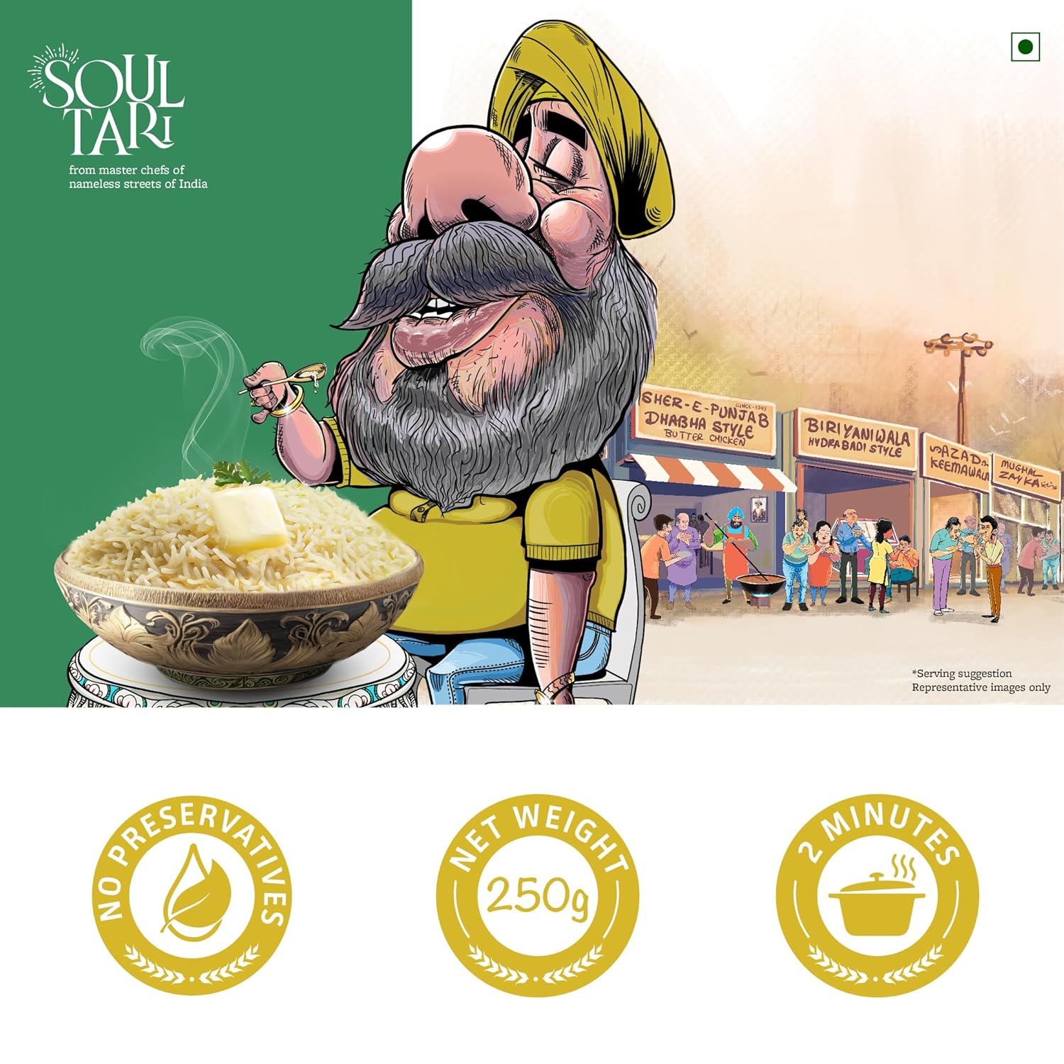 Soultari Ready to Eat Butter Garlic Rice | Fluffy white Basmati rice tempered with Garlic and Butter | Just Heat and Eat | 250 Gram | Pack Of 1
