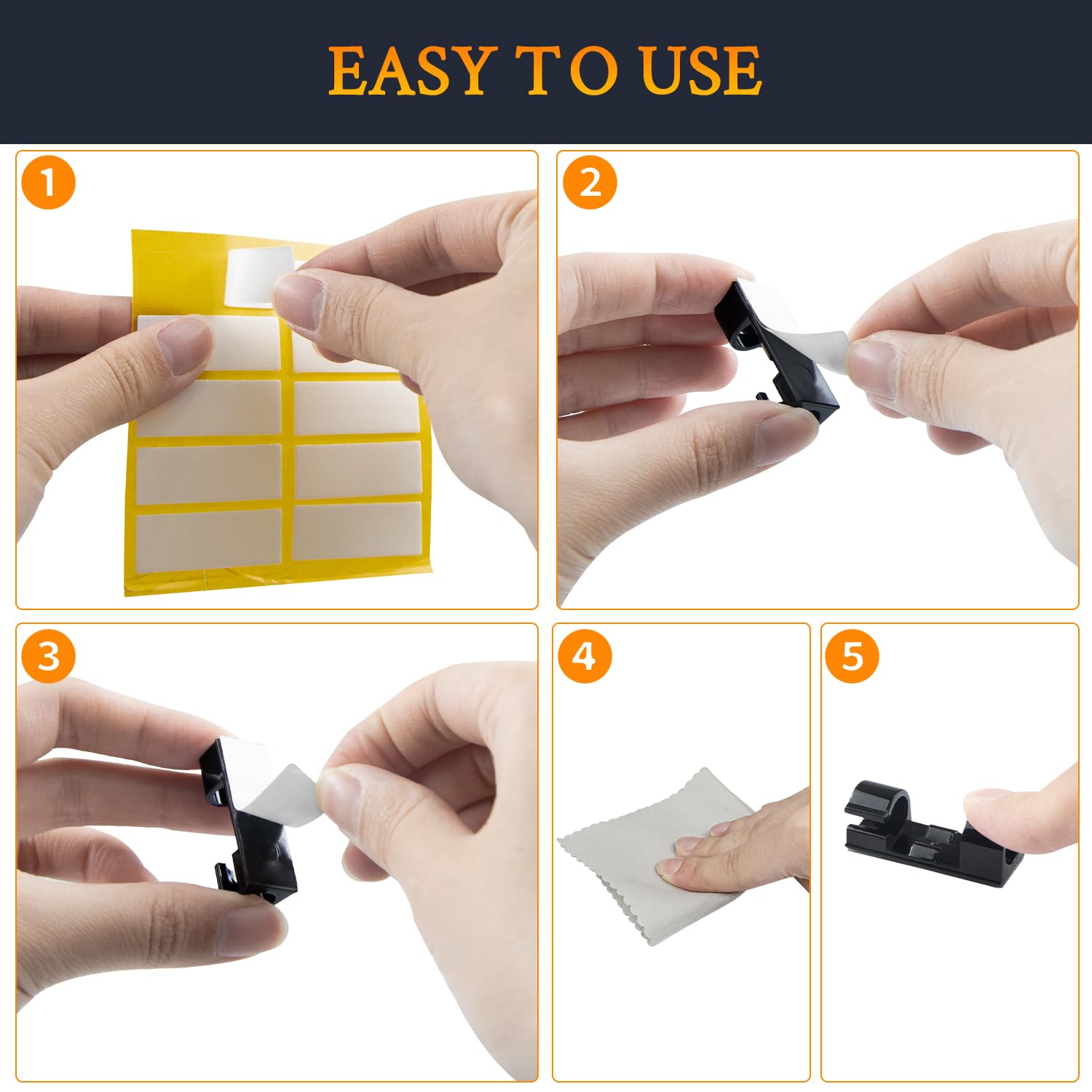 SOULWIT 50 Pcs Self Adhesive Cable Management Clips, Cable Organizers Sticky Wire Clips Cord Holder for TV PC Laptop Ethernet Cable Desktop Home Office (Black)