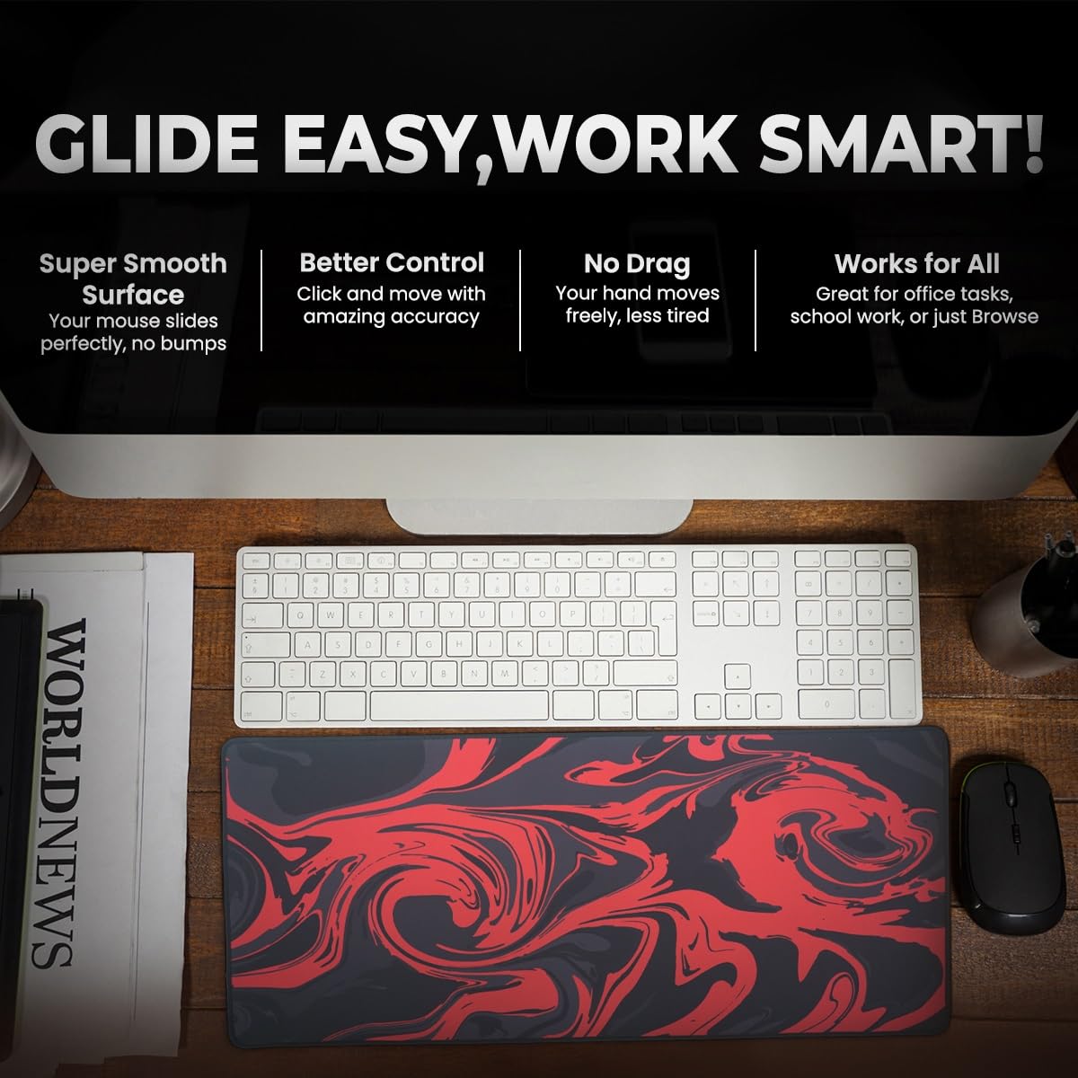 SPIN CART Large Gaming Mouse pad, Long XXL Extended Desk Table Mat Mousepad for Laptop PC Computer (Abstract Red)