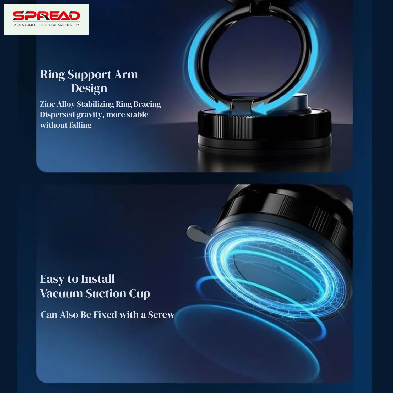 SPREAD Magnetic Foldable Phone Stand with 360 Degree Rotation | Strong Suction Cup Mobile Holder | Adjustable Desk and Car Mount for All Smartphones | Compact Folding Stand for Gym, Kitchen & More