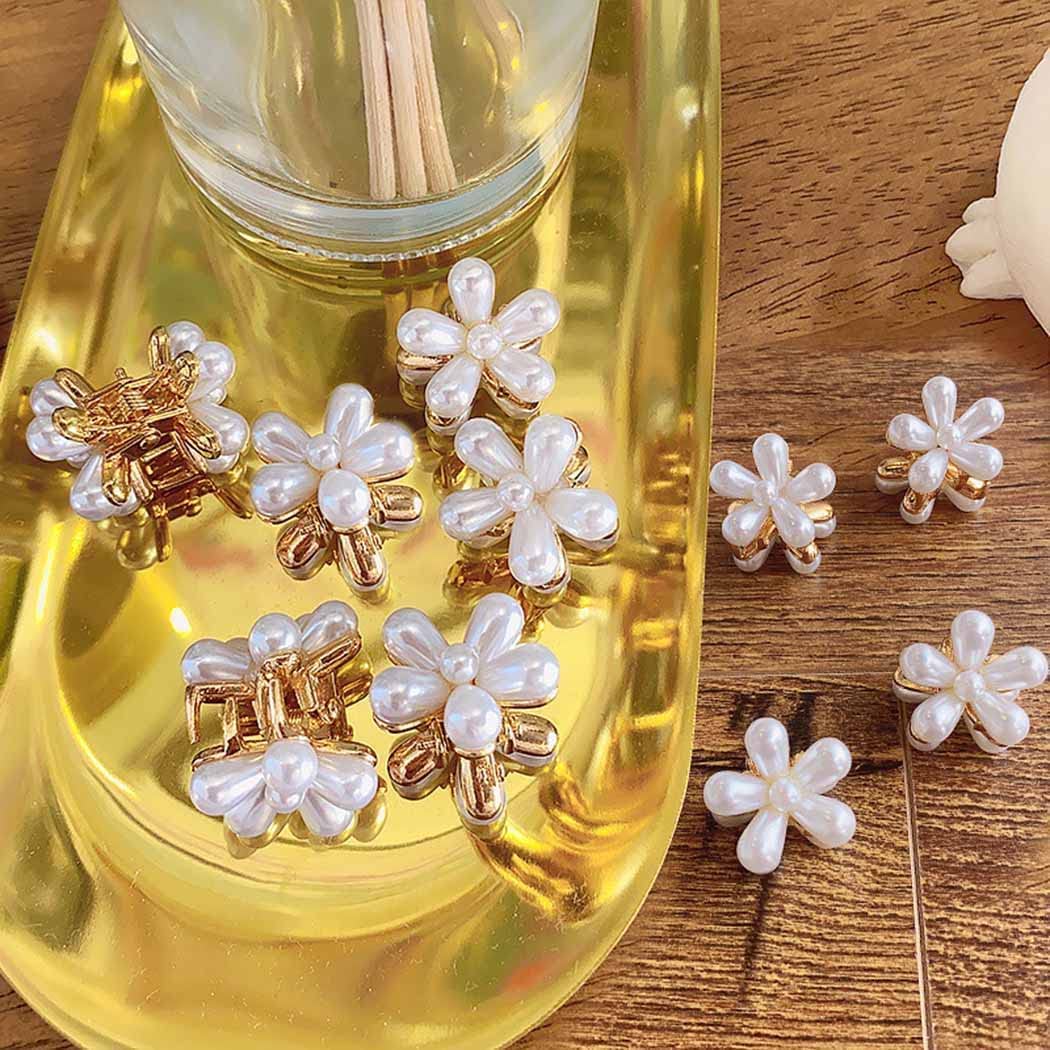 Starvis 10 Pcs White Pearl Mini Claw Metal Clips Flower Design Small Clutcher Barrettes Hair Accessories for Women and Girls
