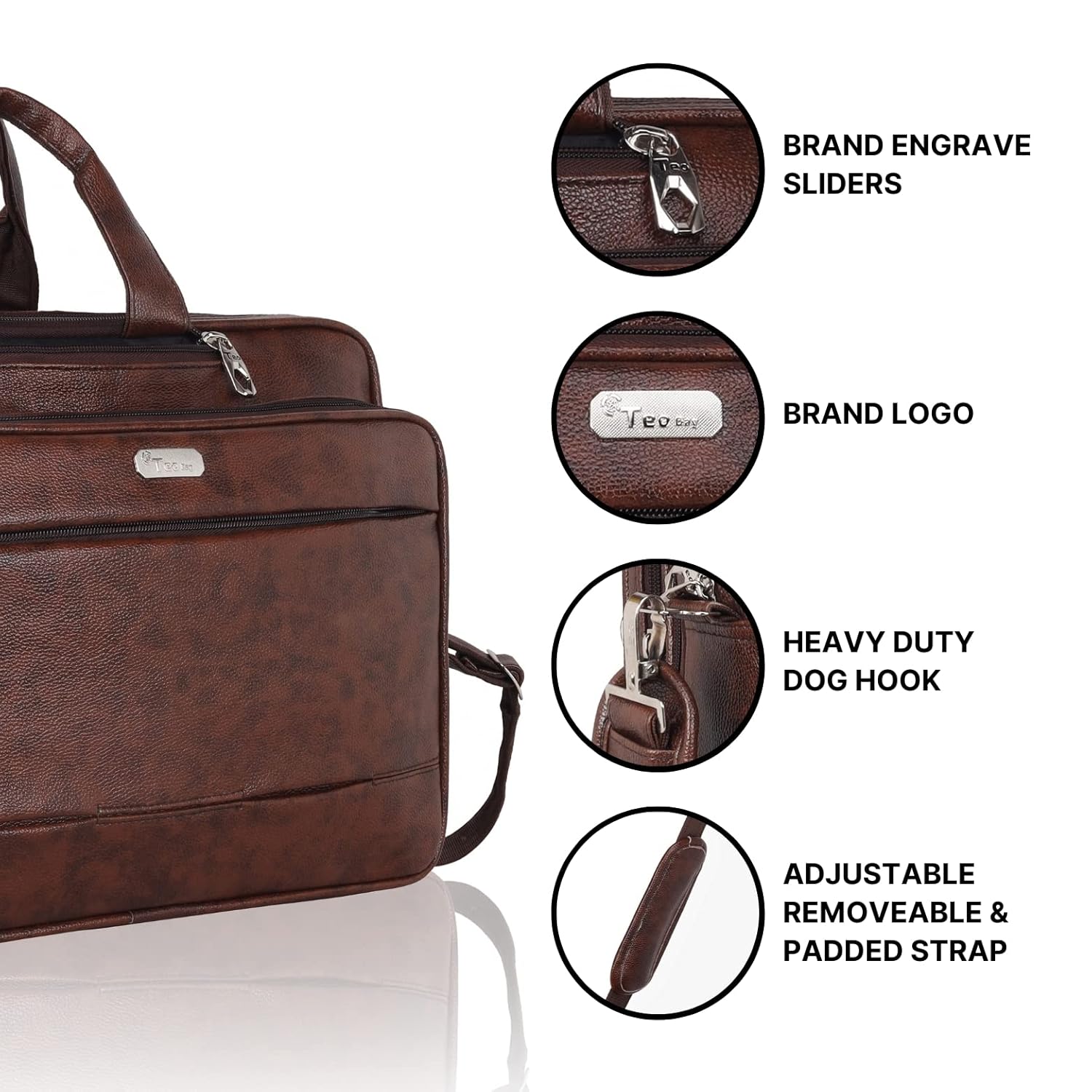 Teo 16 Inch Vegan Leather Laptop Briefcase Large Satchel Shoulder Bag Office College Laptop with Adjustable Strap