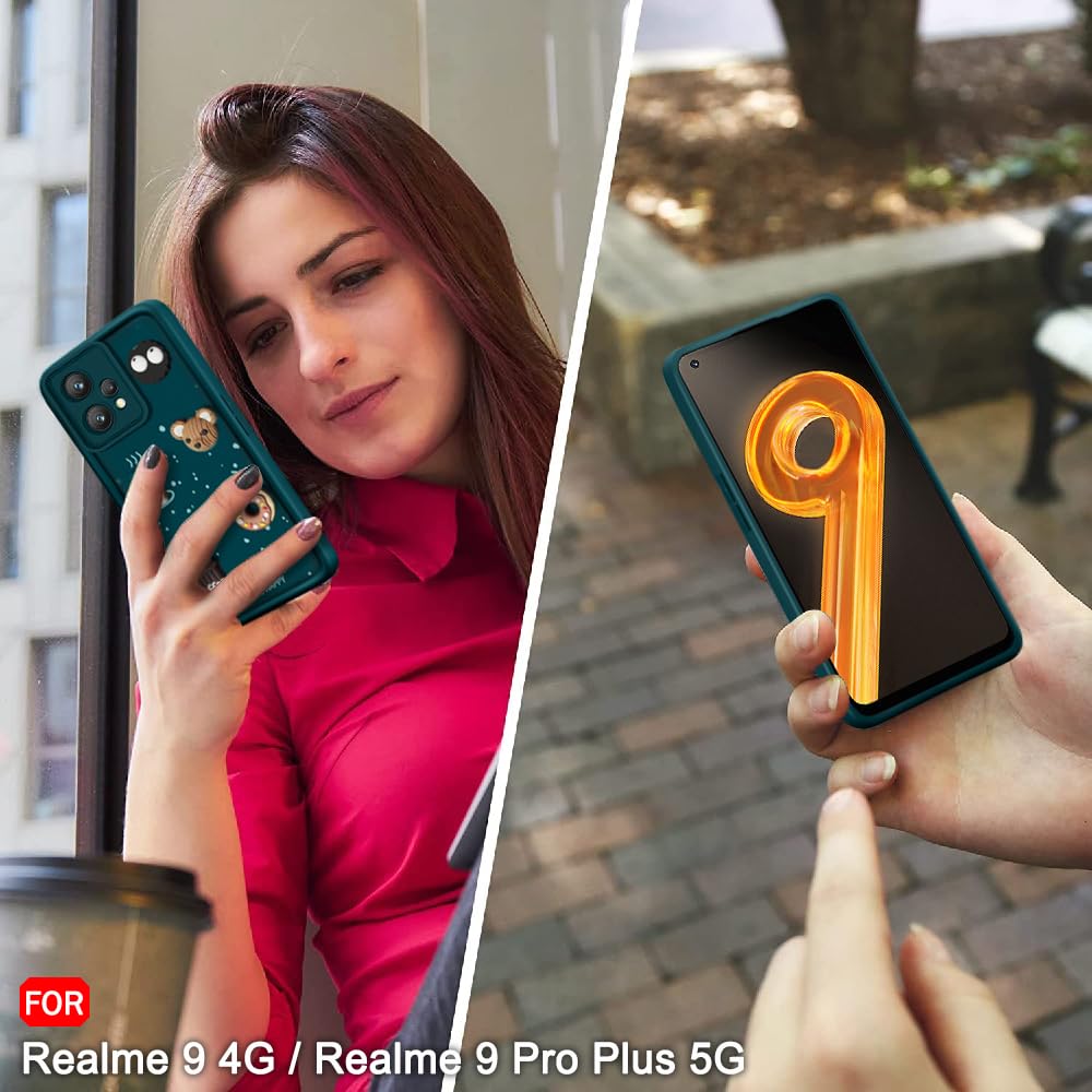 TheGiftKart Back Cover Case for Realme 9 4G / 9 Pro Plus 5G | Cute Fun Cartoon 3D Bear Coffee Case | Full Camera Protection | Shockproof Back Cover Case for Realme 9 4G / 9 Pro+ 5G (Silicone, Green)