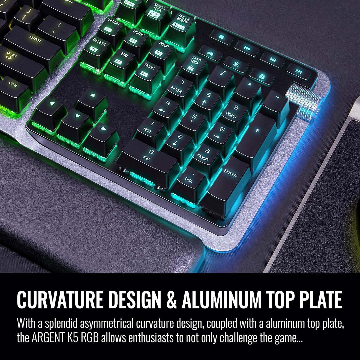 Thermaltake Argent K5 RGB Gaming Keyboard (Silver Switch), Aluminum and Streamlined Titanium Design, 16.8 Million RGB Color, Anti-ghosting, Magnetic Synthetic Leather Wrist Rest, GKB-KB5-SSSRUS-01