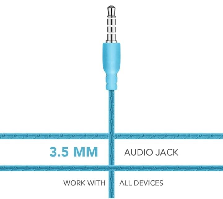 TIANI 3.5Mm Wired in Ear Earphones, in-Line Mic, Deep Bass, 1.2M Strong and Long Lasting Cable, Light Weight, Compatible with Mobile | Tablet | Laptop (Cyan)