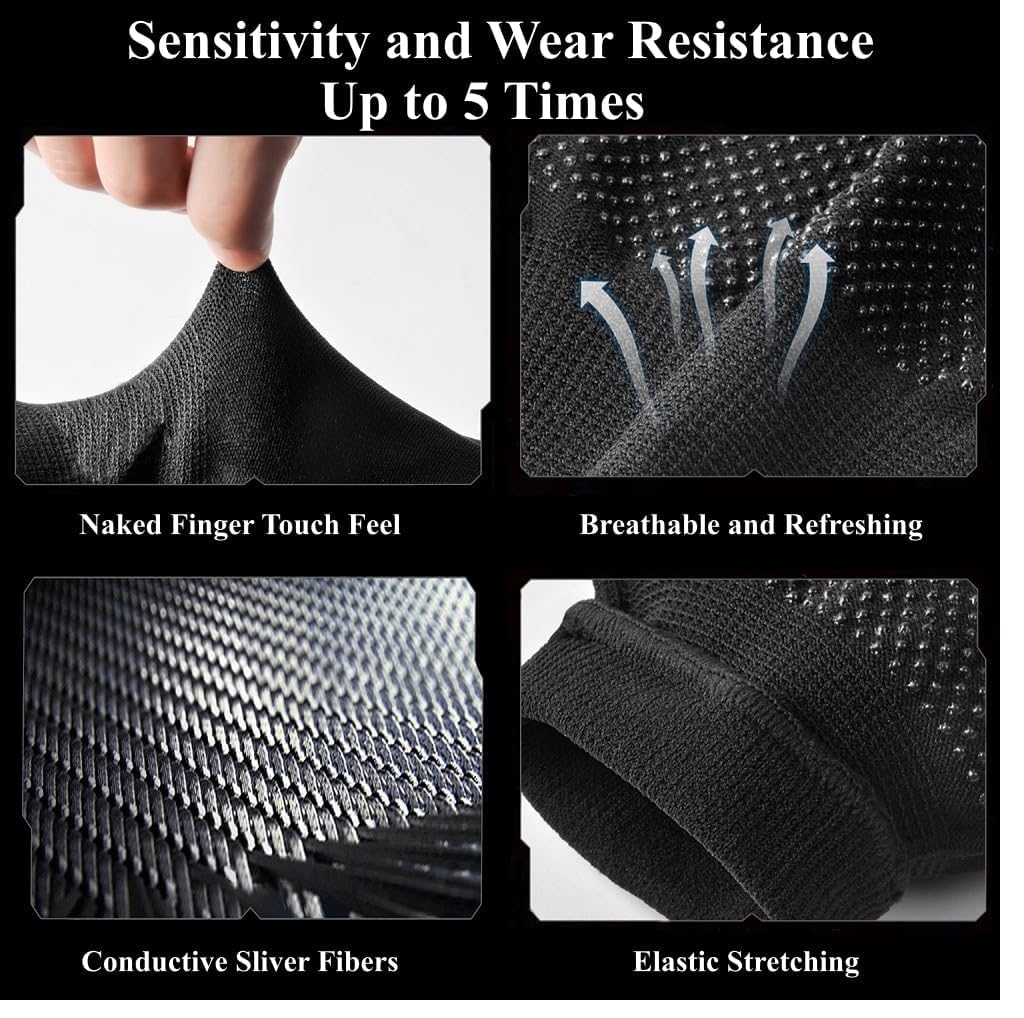 TMG Touchscreen Gloves for Mobile Phone/iPad Tablet, Anti Sweat Gaming Gloves, Breathable Seamless Full Finger Game Gloves, Black, One Size, Unisex