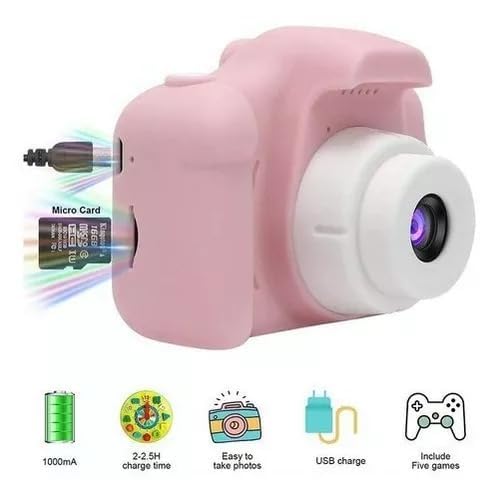 Pink kids camera 1080p lens