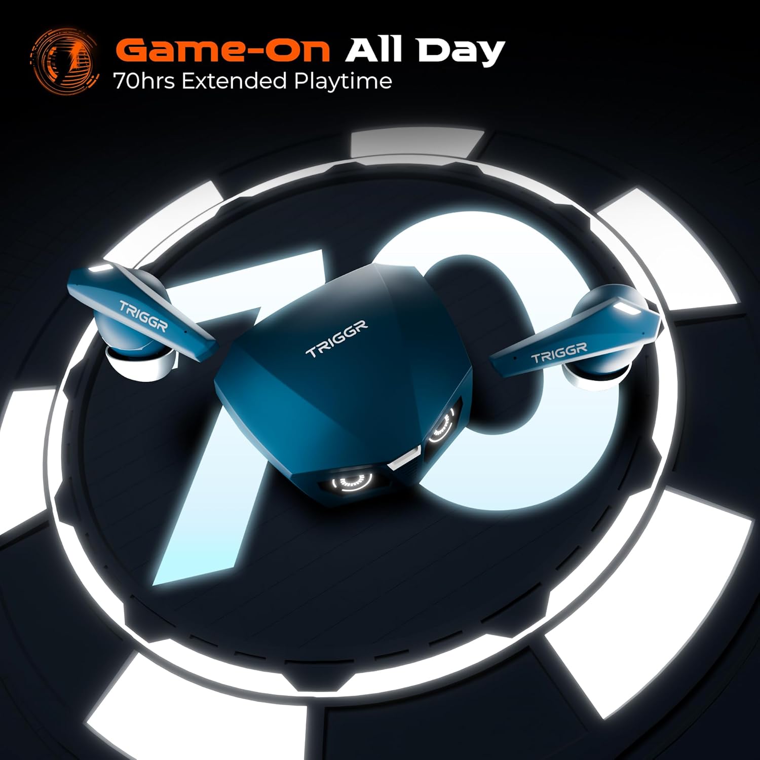 TRIGGR Kraken X1 Plus with Dual Pairing, Battery Display, Quad ENC, 70H Battery, v5.3 Bluetooth (Ajure Blue, True Wireless)