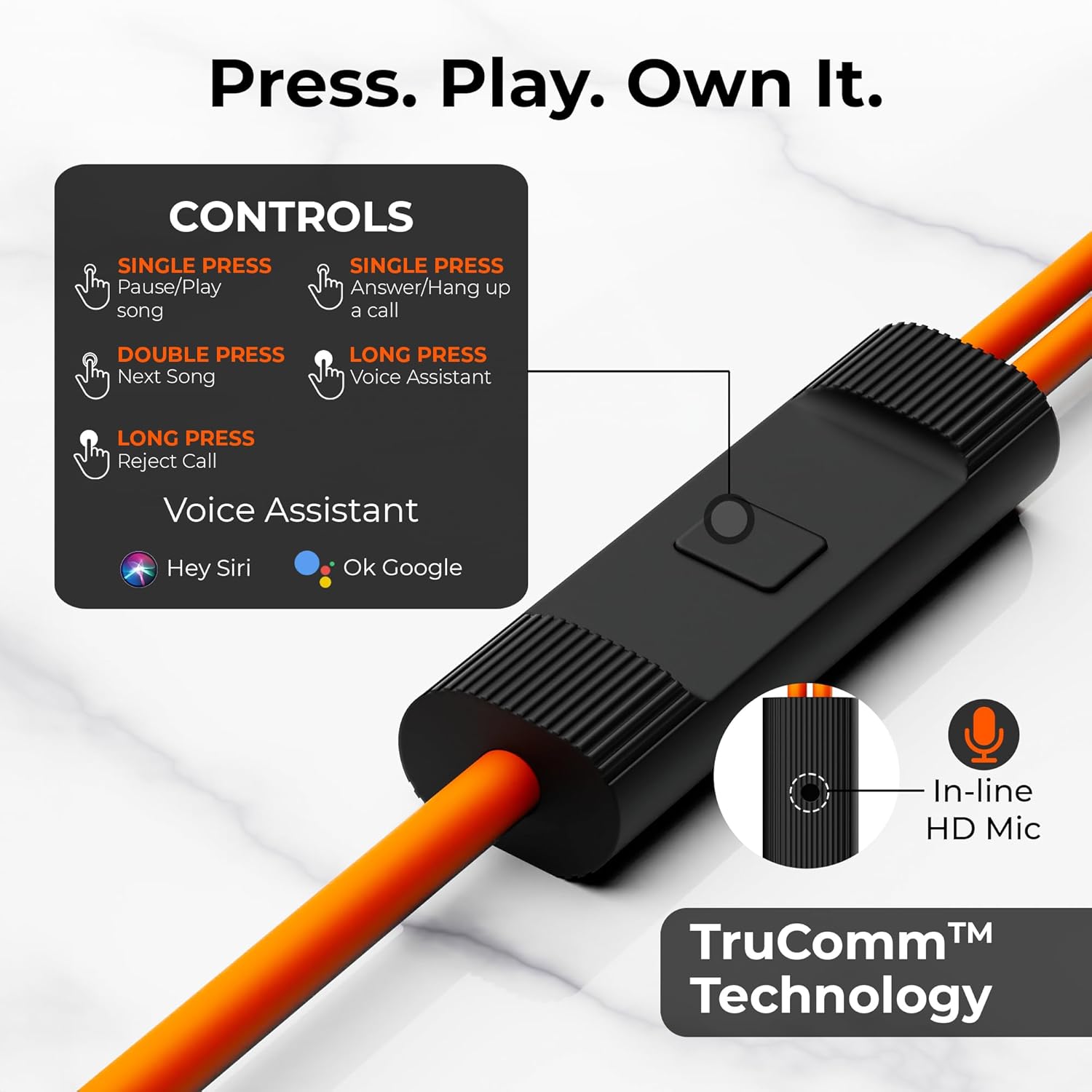 TruComm Tech In-Line Mic and Controls: Enjoy clear calls with the built-in HD microphone and manage your audio effortlessly with in-line volume and playback controls.