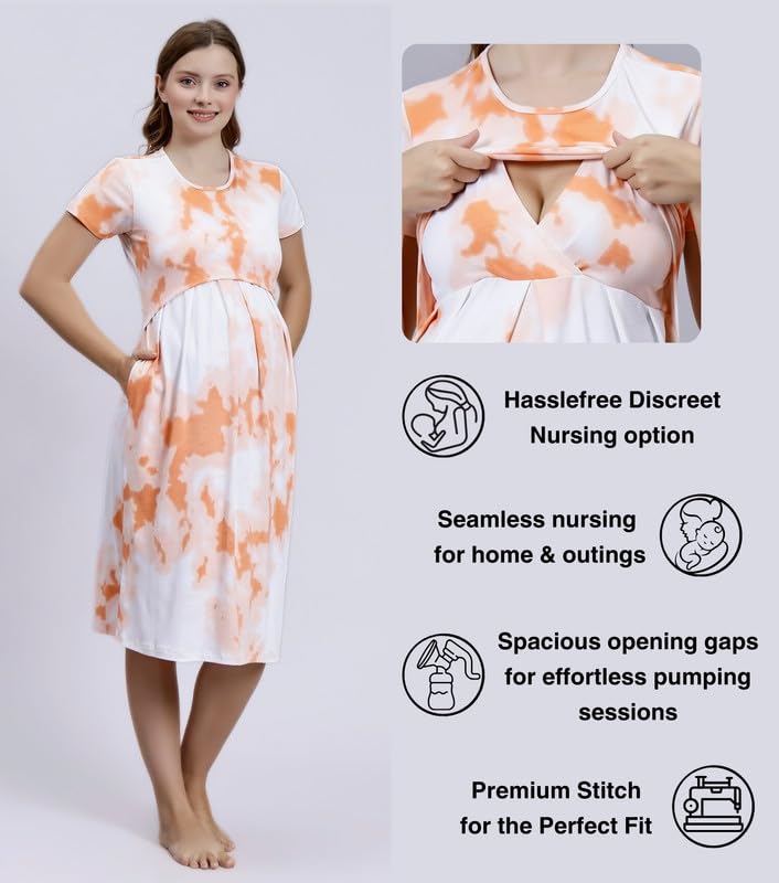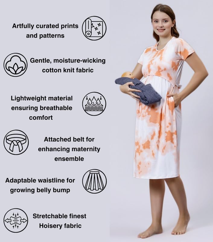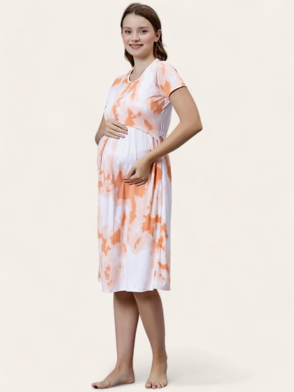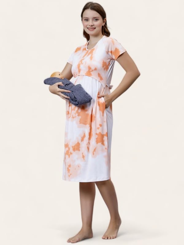True Shape Feeding Kurtis for Women Cotton | Knitted Hosiery Zipless Maternity Nighty Kurta with Breastfeeding Access & Side Pockets for Pre & Post Pregnancy
