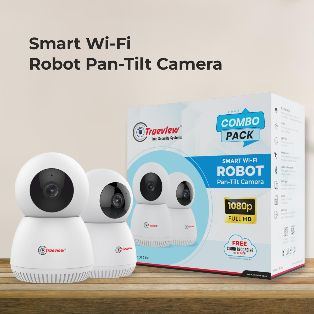 Trueview 3MP Pack of 2 Smart CCTV Wi-fi Home Security Camera with Pan Tilt 360° View, 2 Way Talk, Cloud Monitor, Motion Detect, Supports SD Card Up to 256 GB, Night Vision (3MP Robot – Pack of 2)