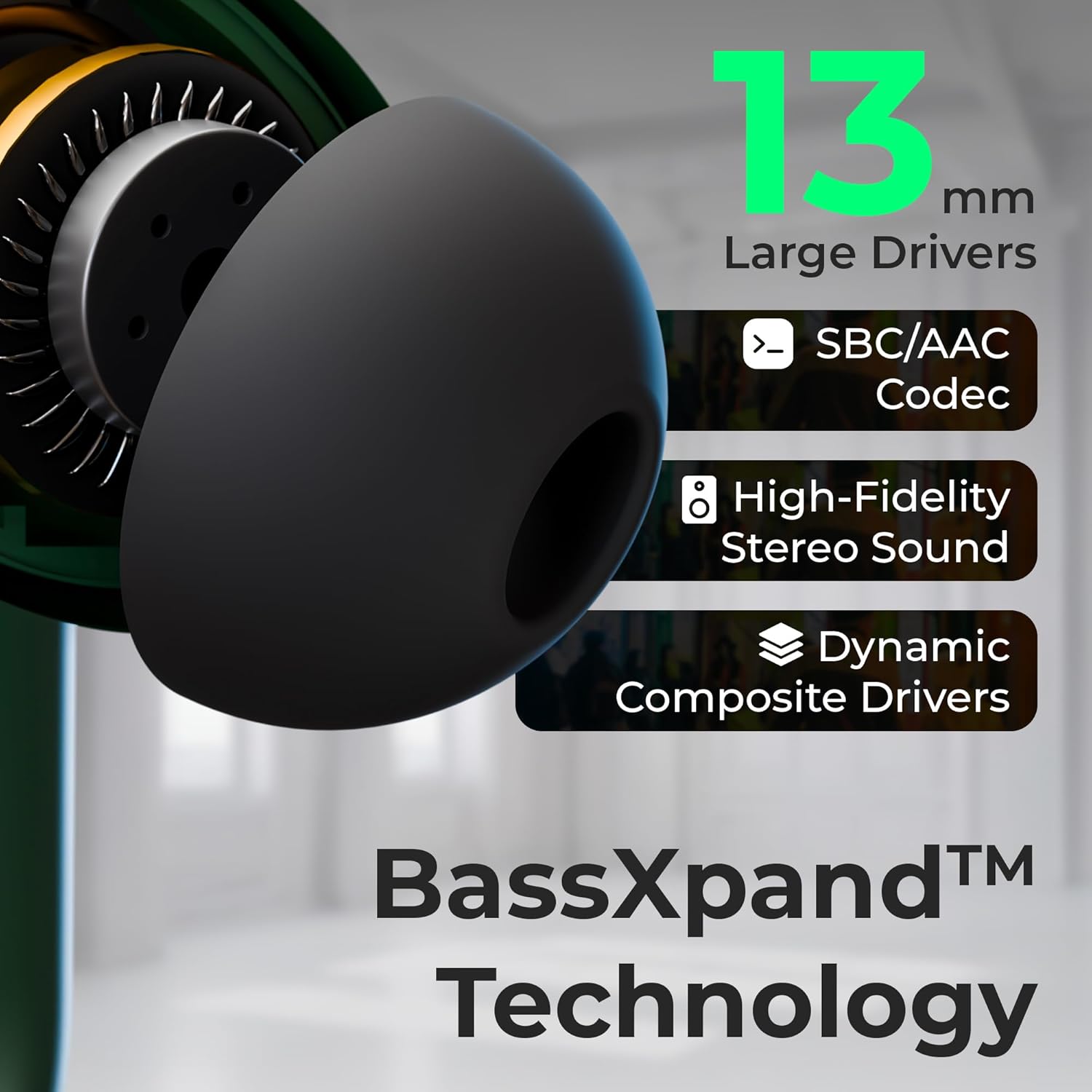 Ultrabuds N3 with Crisp Calling, 50H Playtime, 13mm Drivers, BassXpand Bluetooth (Jungle Green, in The Ear)