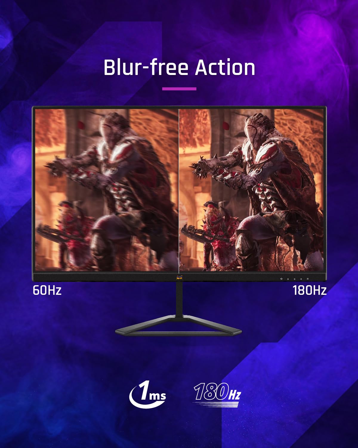 180Hz refresh rate which means that even when the action heats up, your gameplay will be smooth and lag-free, 0.5MS Response time for for blur free gaming