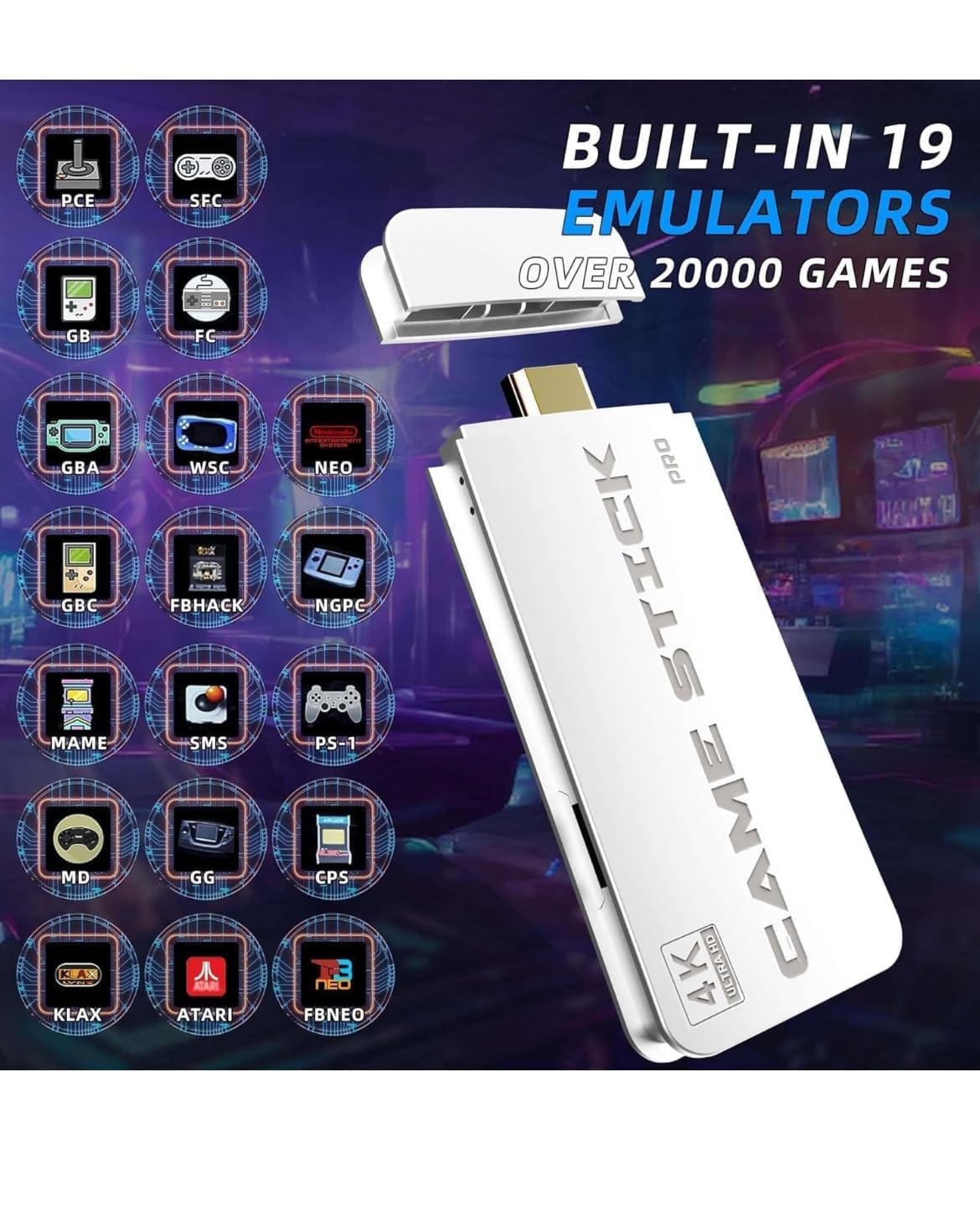 WBD New Retro Game Console, Nostalgia Gaming Stick, Classic Video Games with HDMI, 20,000+ Games and 19 Emulators, Upgraded Dual 2.4G Wireless Controllers 64GB 2025 Newest Game Console Stick with 19 Emulators】Introducing the GamingBoy wireless TV game console, pre-loaded with over 20,000 classic games and 19 emulators, along with a 64GB TF card. Enjoy the convenience of playing without the need for downloads or installations; no internet connection is required. Simply connect to your TV, and you’re ready to dive into a world of 20,000+ classic games. (Press SELECT and START simultaneously to return to the main menu.)