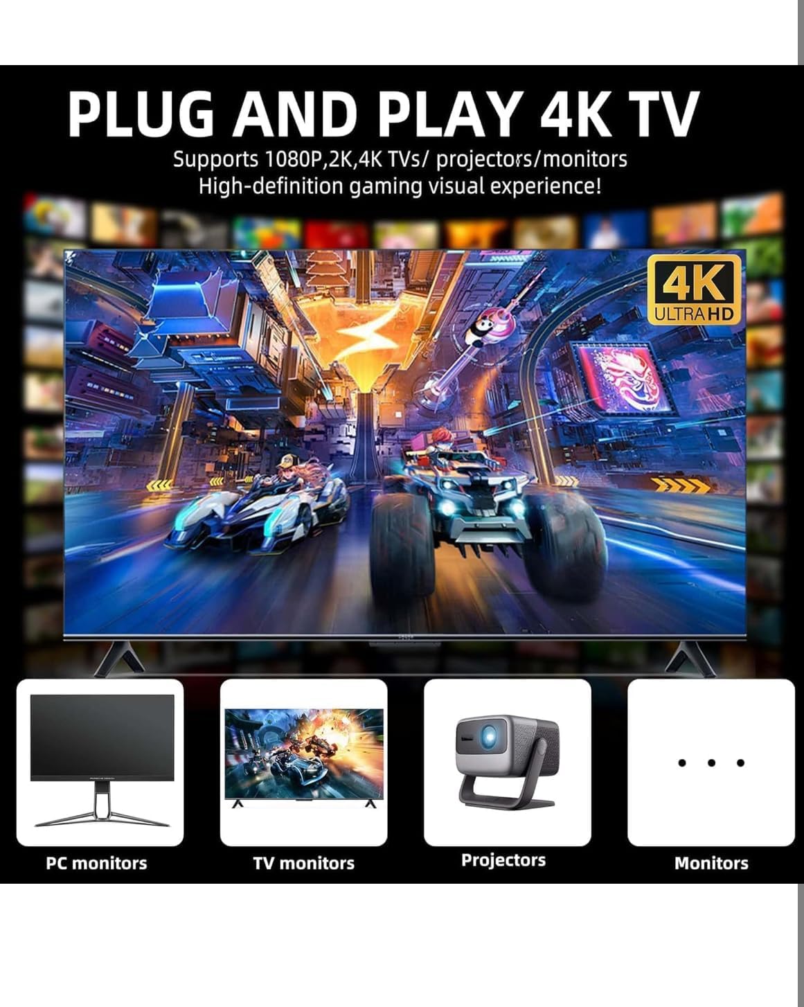 【4K HDMI Game Experience】Experience 4K HD HDMI output with 1080P HD quality. Equipped with an extended HDMI extension cable, this console is compatible with various monitors and can be connected to TVs, computers, TV set-top boxes, PCs, laptops, and projectors, meeting your high-resolution and game configuration needs. Please ensure your screen has an HDMI input port for connection. The retro game console stick also supports saving game progress, making it perfect for gaming at any time.