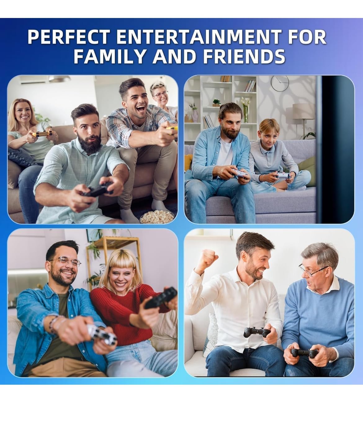 【Dual 2.4GHz Wireless Controllers】Enjoy stable and nearly latency-free gaming with 2 upgraded 2.4GHz wireless controllers. The Video Game Console supports simultaneous play for two people, eliminating wire interference during gameplay. The maximum connection distance is 40 feet.
