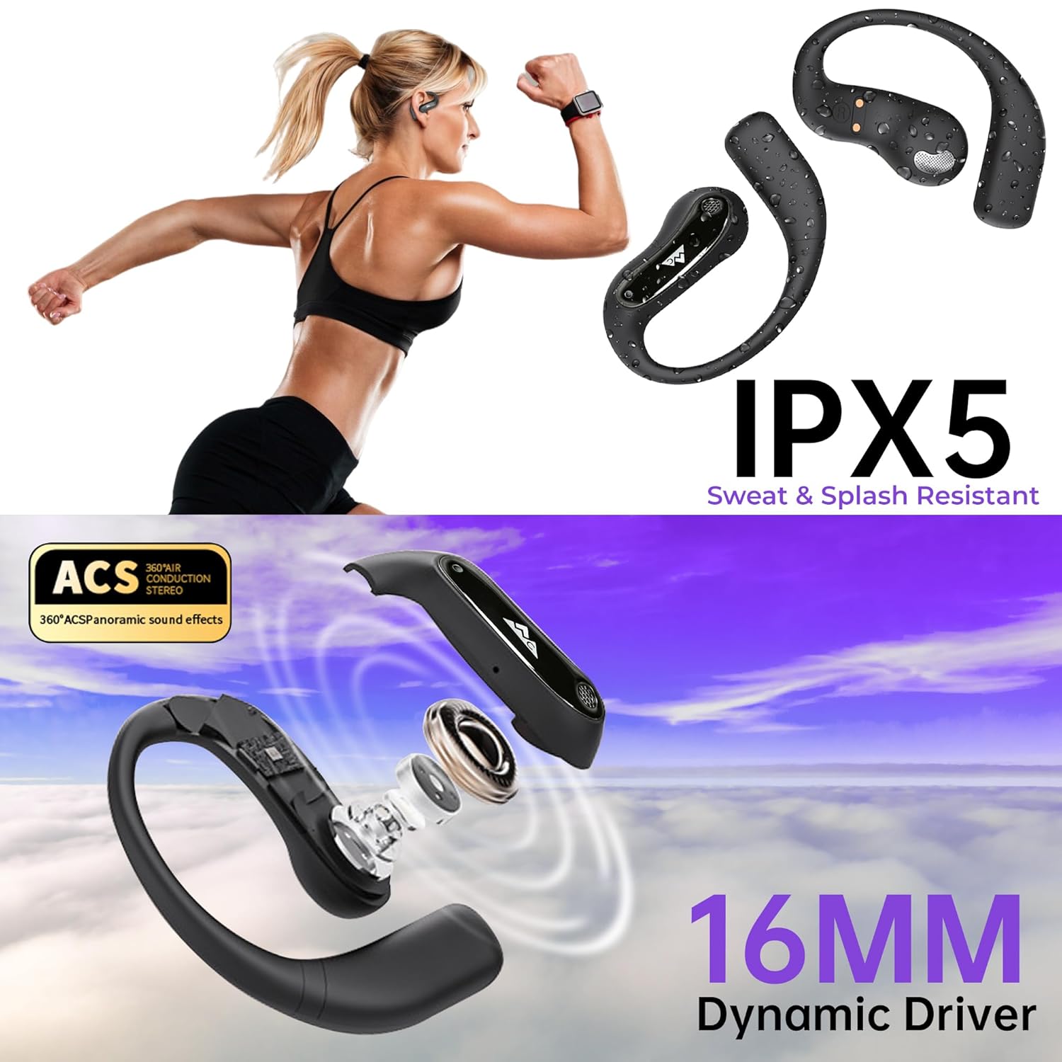 WeCool Moonwalk M1 Pro Open Ear Earbuds Wireless with 360° Panoramic Sound, Bluetooth 5.4 Ows Earphones with Call Noise Reduction, Ear Safe Headphones with Mic, 60H Playtime, LED Display, IP55