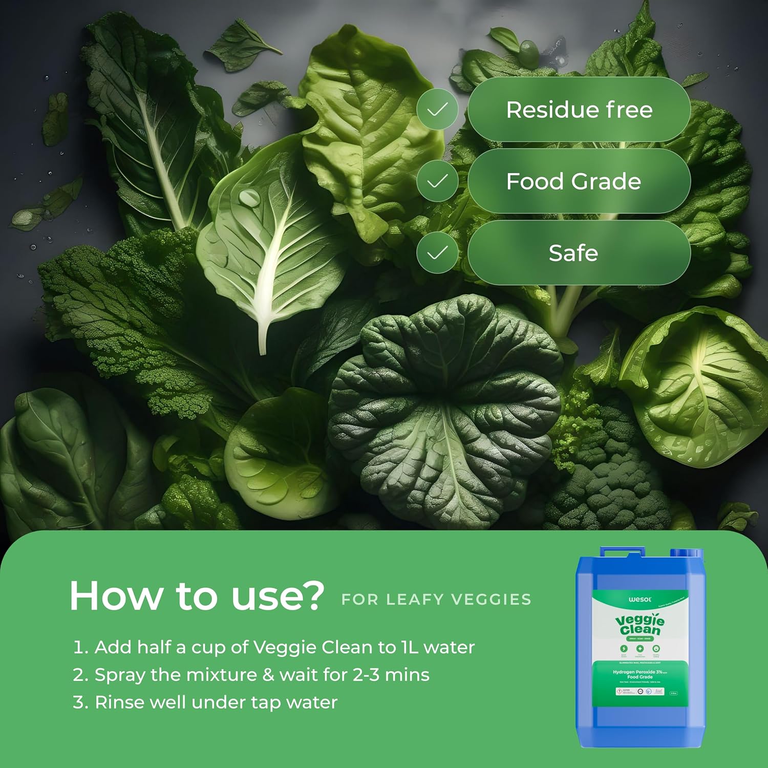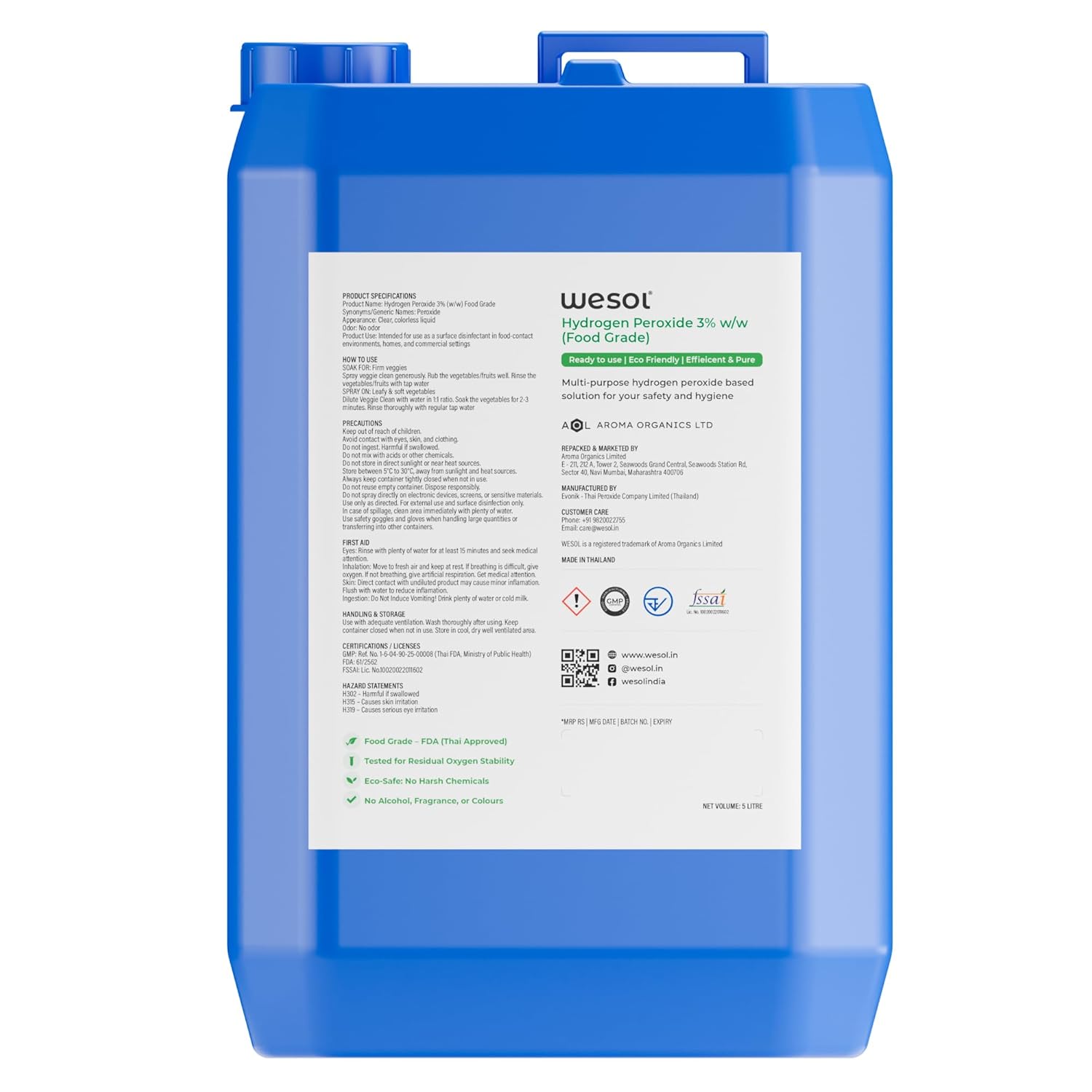Wesol Vegetable Wash Liquid Hydrogen Peroxide 3% w/w Food Grade 5L Multi-Use Disinfectant | Kills 99.9% Germs & Viruses | Best For Cleaning, General Disinfection, Food production units