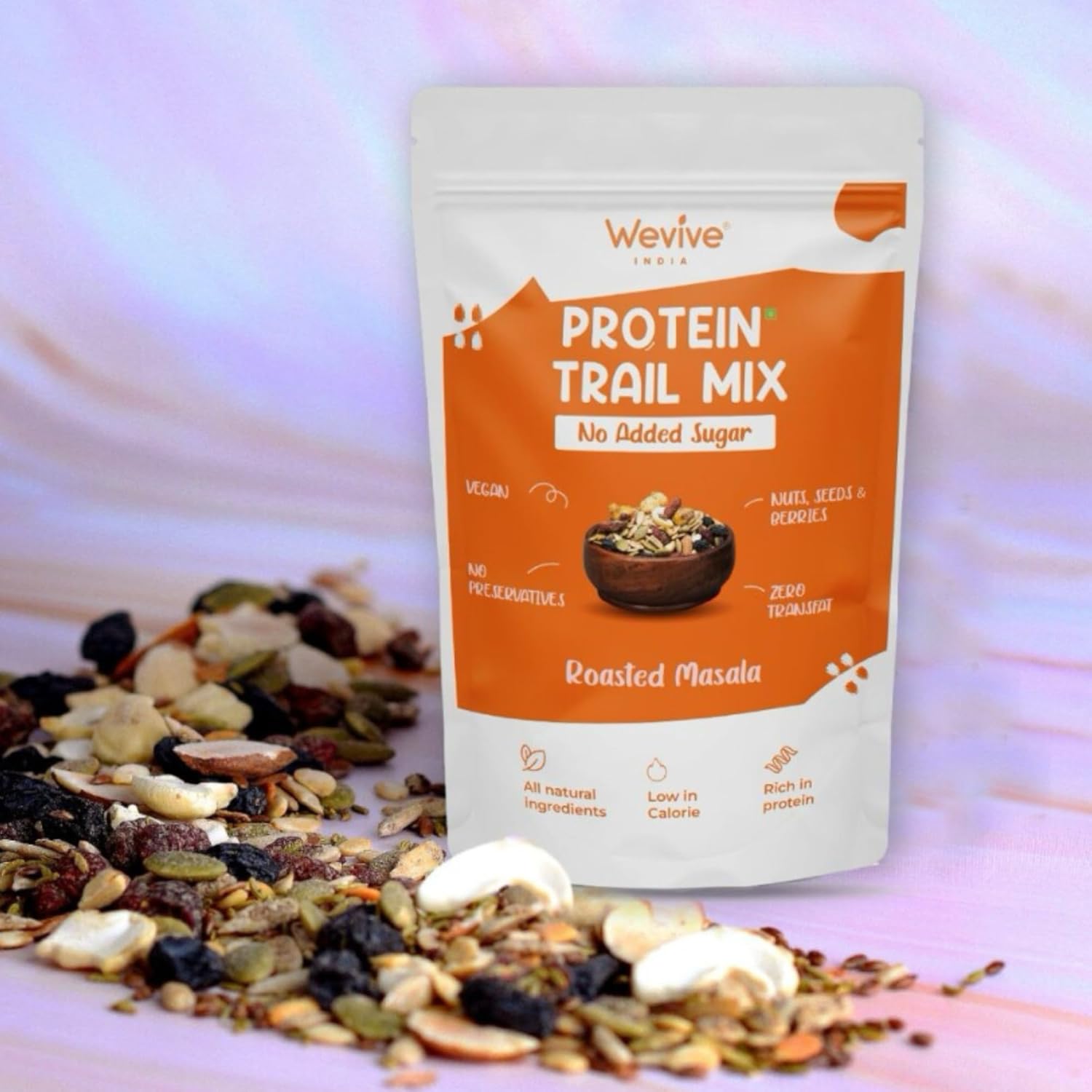 PREMIUM PROTEIN TRAIL MIX – A WHOLESOME SNACK FOR ENERGY & HEALTH! WeviveIndia’s Protein Trail Mix is a power-packed blend of premium nuts, seeds, and berries—including Almonds, Cashews, Pistachios, Pumpkin Seeds, Sunflower Seeds, Watermelon Seeds, Chia Seeds, Cranberries & Black Raisins. Rich in protein, fiber, and antioxidants, this nutritious mix is perfect for fitness enthusiasts, office-goers, and kids. ✨ Why Choose WeviveIndia Trail Mix? ✔ 100% Natural & No Preservatives – Made with premium-quality ingredients, free from chemicals or additives. ✔ High in Protein & Healthy Fats – Keeps you full longer and supports muscle recovery. ✔ Loaded with Antioxidants & Omega-3 – Boosts immunity, improves heart health & aids digestion. ✔ Versatile Superfood – Enjoy as a standalone snack, with yogurt, or in smoothie bowls. 🔥 HOW TO ENJOY? On-the-Go Snacking – A quick & healthy energy boost anytime. Pre/Post-Workout Fuel – Supports fitness & muscle recovery. 😋 Crunchy, chatapata alternative to Chivda/Bhujia & Chips WeviveIndia – Bringing You the Best of Nature’s Nutrition!