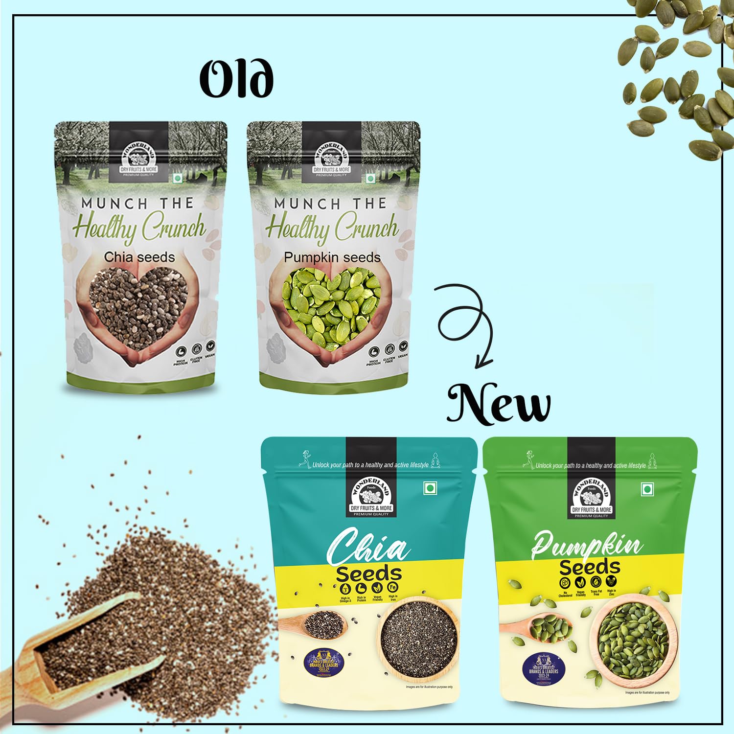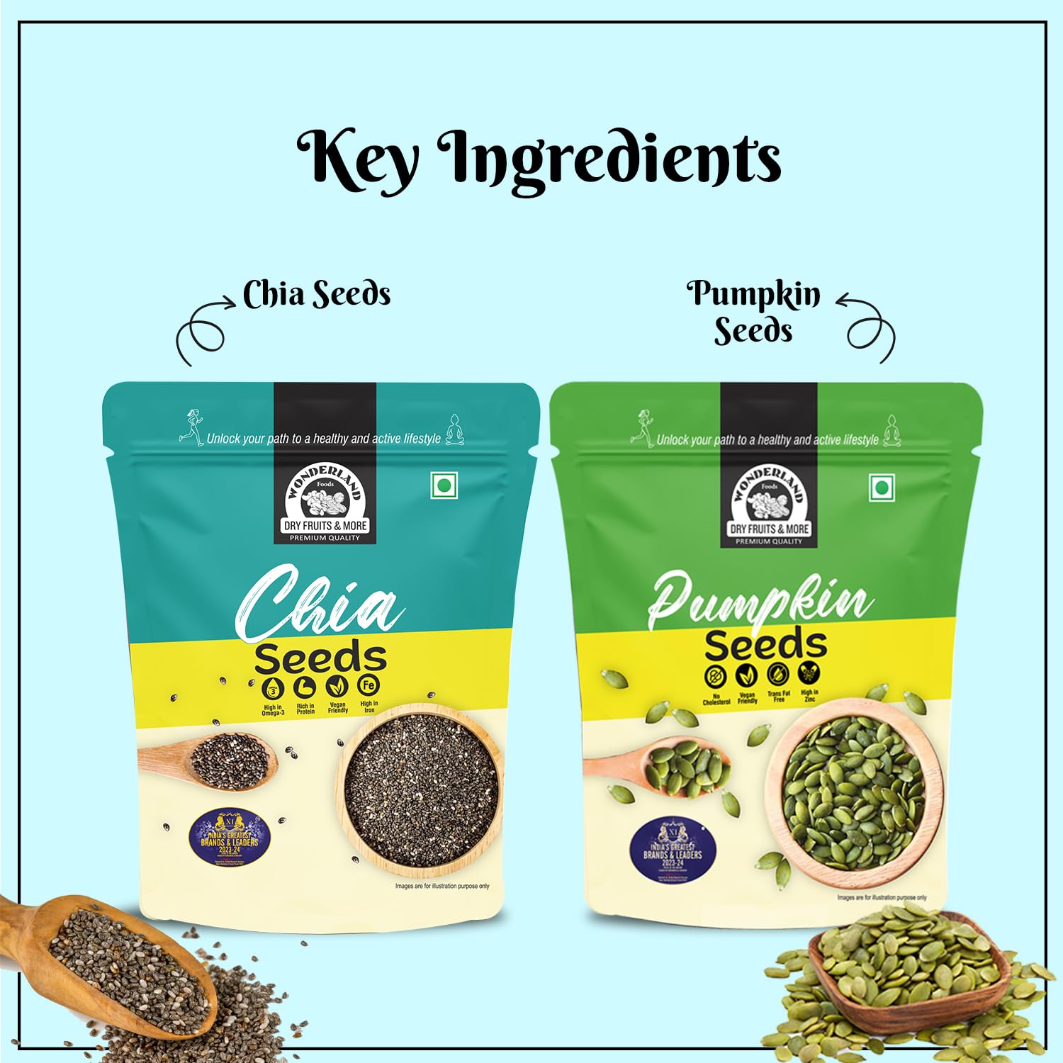 Wonderland Foods 500g (250g X 2) Healthy Raw (Unroasted) Chia & Pumpkin Seeds Pouch Combo Pack