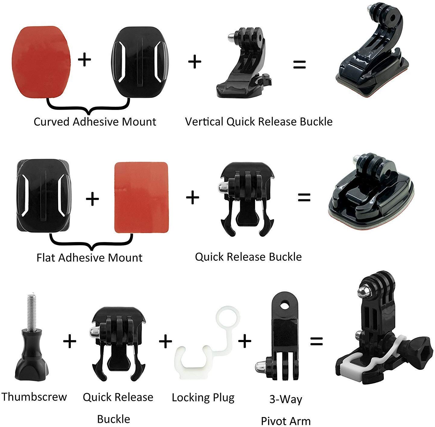Complete Filmmaking Kit: This package includes all the essential components you need for optimal filmmaking experiences, including thumb screws, curved and flat surface bases with 3M adhesive stickers, a J hook buckle, and long and short links